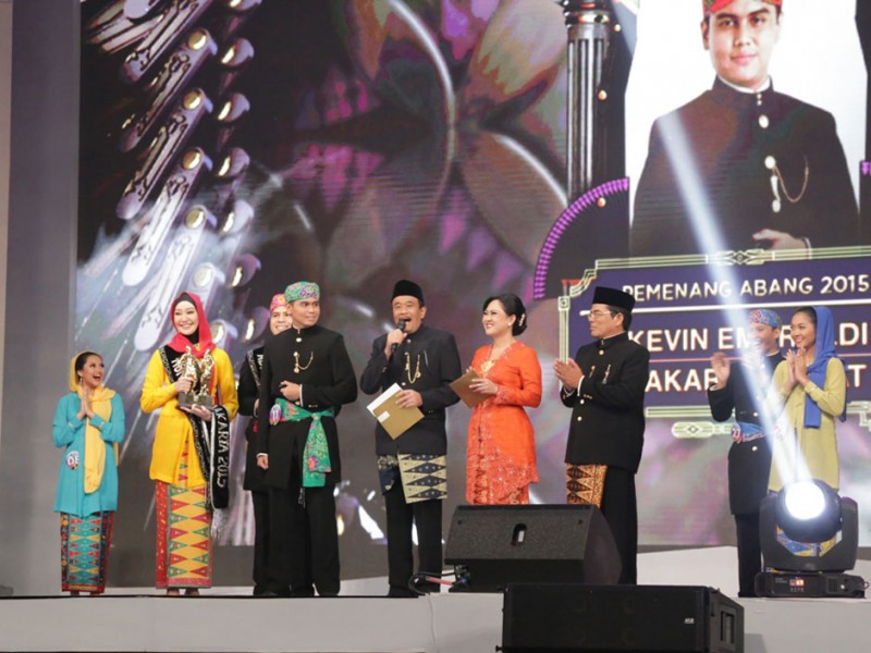 Kevin Emaraldi dan Mutia Khanza dinobatkan sebagai Abang dan None(Abnon) DKI Jakarta Tahun 2015. Pengumuman pemenang Abnon dan penyerahan hadiah dilakukan langsung Wakil Gubernur DKI Jakarta, Djarot Saiful Hidayat dan Ketua Badan Koordinasi Organisasi Wanita DKI Jakarta, Happy Farida Hidayat, Jumat (14/08/2015) malam. (Foto: Yopie/beritajakarta.com)