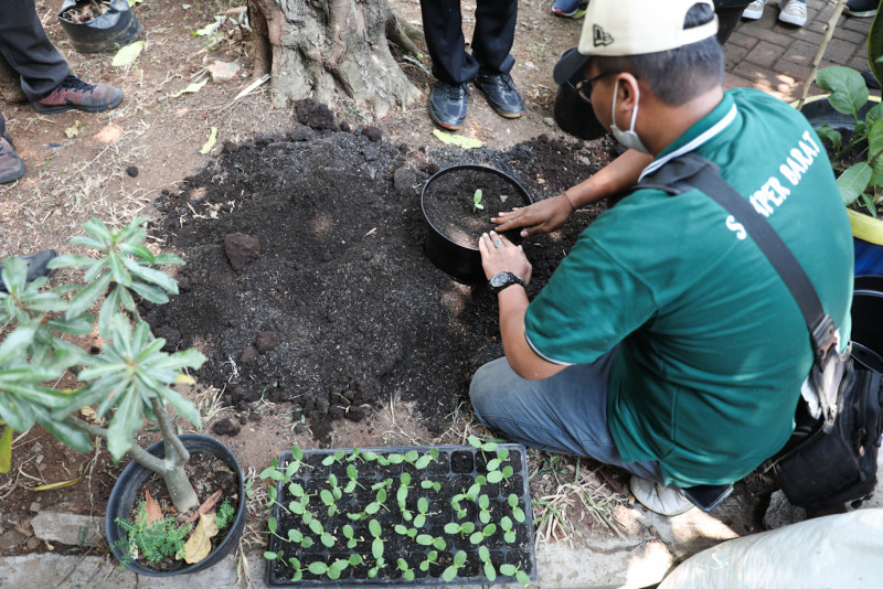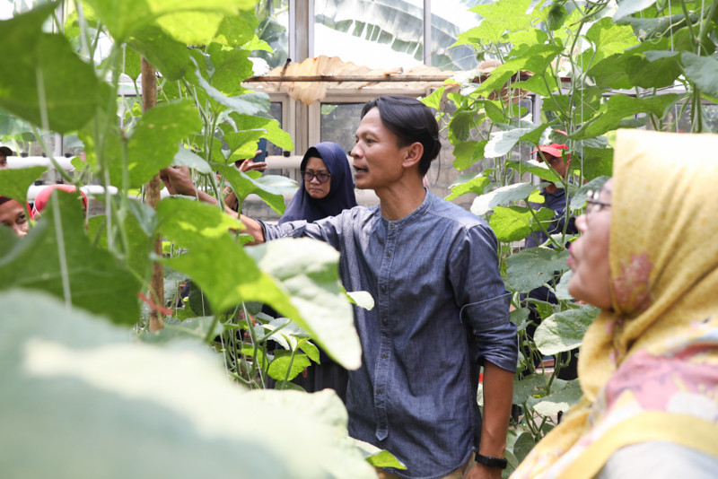 Dinas Ketahanan Pangan, Kelautan, dan Pertanian (KPKP) DKI Jakarta menggelar bimbingan teknis (bimtek) budi daya melon di Balai Penyuluhan Pertanian (BPP) Sukapura, Kelurahan Rorotan, Cilincing, Jakarta Utara, Rabu (13/9). Sebanyak 31 peserta bimtek mendapatkan teori dan melihat langsung budi d aya melon di BPP Sukapura.