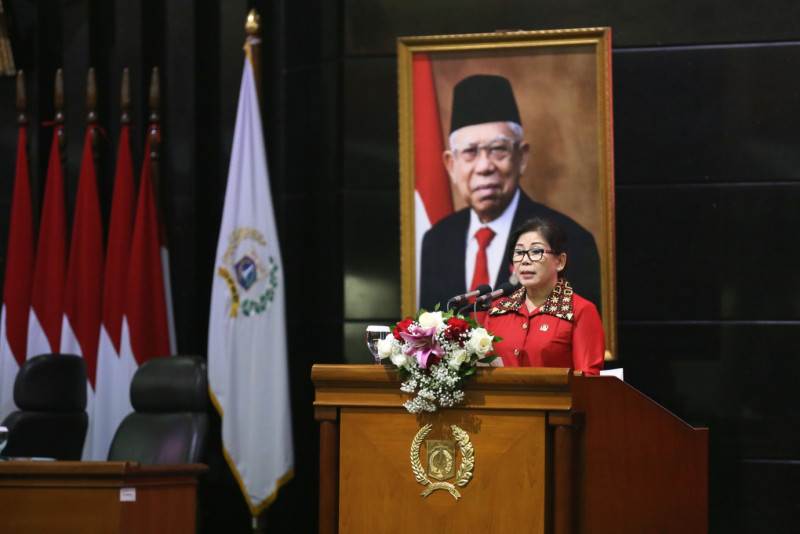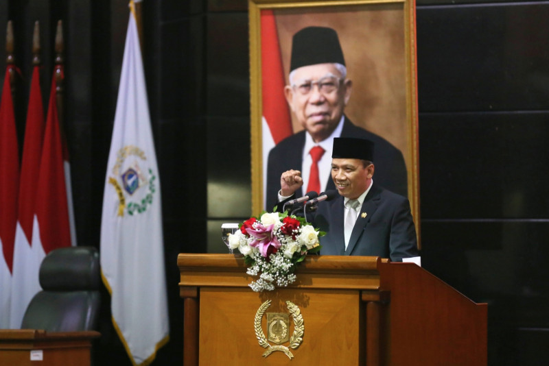 Penjabat (Pj) Gubernur DKI Jakarta, Heru Budi Hartono menghadiri Rapat Paripurna Dewan Perwakilan Rakyat Daerah (DPRD) Provinsi DKI Jakarta di ruang rapat paripurna, Jalan Kebon Sirih, Gambir, Jakarta Pusat, Rabu (13/9). Rapat paripurna ini beragendakan pandangan umum fraksi-fraksi dan jawaban atas pemandangan umum fraksi-fraksi terhadap raperda tentang Perubahan APBD Provinsi DKI Jakarta tahun anggaran 2023.