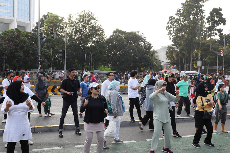 Dinas Kesehatan (Dinkes) DKI Jakarta gelar rangkaian kegiatan kampanye publik kesadaran akan kesehatan jantung di Hari Bebas Kendaraan Bermotor (HBKB) Sudirman-Thamrin, Jakarta Pusat, Minggu (17/9). Acara ini merupakan puncak peringatan Hari Jantung Sedunia yang rutin diselenggarakan setiap tahun dengan mengangkat tema kesehatan.