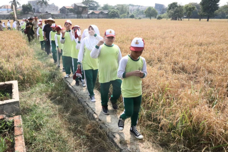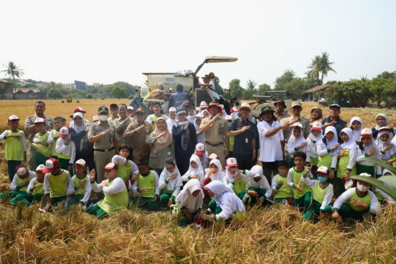 Dinas KPKP Ajak Pelajar SD Panen Padi Bersama