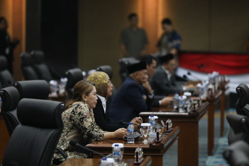 Dewan Perwakilan Rakyat Daerah (DPRD) bersama Pemerintah Provinsi (Pemprov) DKI Jakarta menyepakati Rancangan Kebijakan Umum Anggaran dan Plafon Prioritas Anggaran Sementara (KUA-PPAS) APBD tahun anggaran 2024 di Ruang Rapat Paripurna DPRD, Gambir, Jakarta Pusat, Senin (18/9). Legislatif dan Eksekutif menyepakati angka KUA-PPAS APBD tahun angggaran 2024 sebesar Rp81,5 triliun.