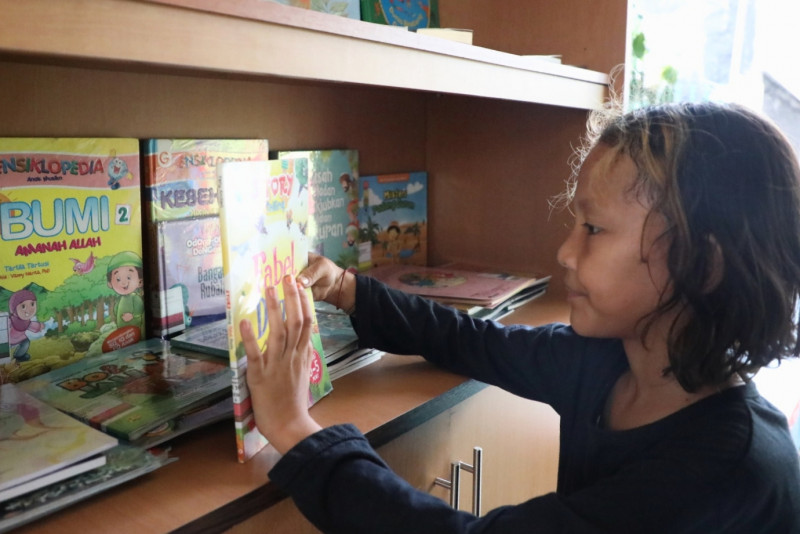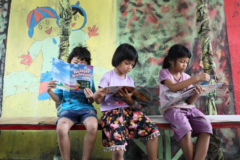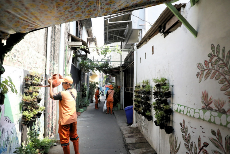 Melihat penataan kawasan unggulan triwulan ketiga di sekitar Jalan Petamburan VII, RT 06/06, Petamburan, Tanah Abang, Jakarta Pusat, Kamis (21/9). Kawasan yang semula gersang, dihijaukan dengan berbagai macam tanaman hias seperti tapak cina, aglaonema, crocot, philodendron kuning dan lainnya. Selain berbagai macam tanaman juga ada taman bacaan dengan total 75 judul buku.