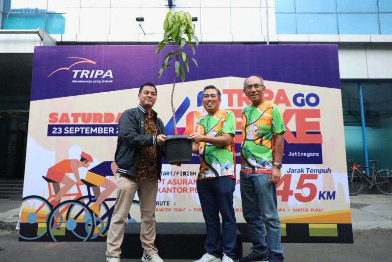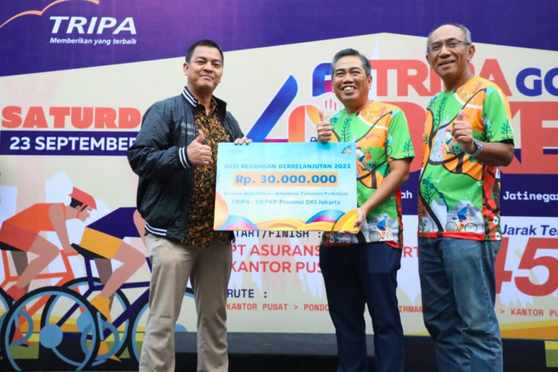 PT Asuransi Tri Pakarta (Tripa) menyerahkan bantuan bagi pelaku urban farming (pertanian perkotaan) berupa bibit pohon dan uang pembinaan untuk petani binaan dinas KPKP di Kantor PT Tripa, Jalan Faletehan I, Kelurahan Melawai, Kebayoran Baru, Jakarta Selatan, Sabtu (23/9). Penyerahan bantuan secara simbolis dilakukan Direktur Utama PT Asuransi Tri Pakarta, G.C. Koen Yulianto kepada Ketua Subkelompok Pertanian Perkotaan dan Penyuluhan Dinas Ketahanan Pangan, Kelautan dan Pertanian (KPKP) DKI Jakarta, Taufik Yulianto.