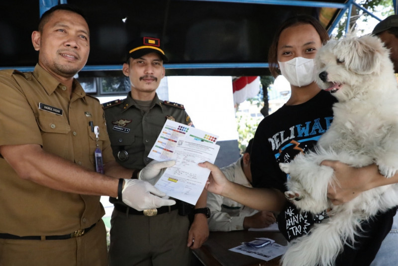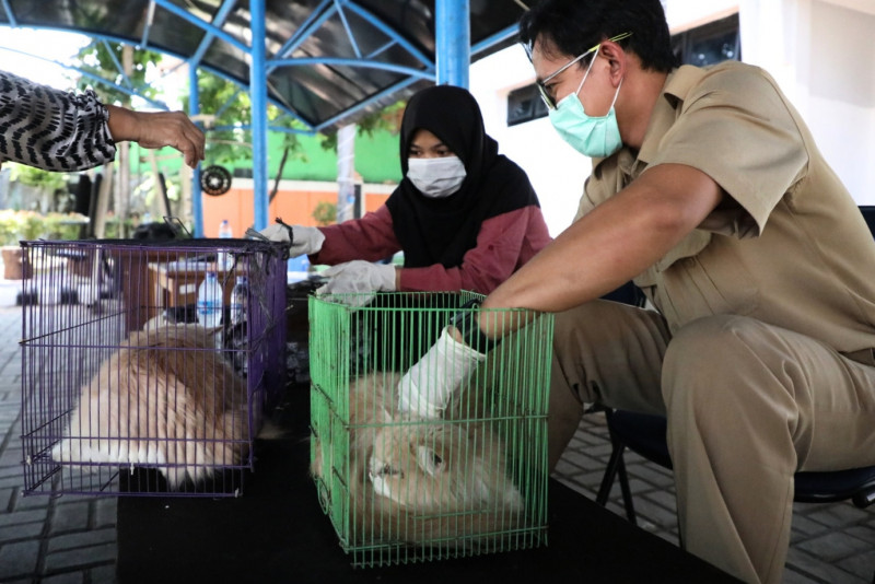 Suku Dinas Ketahanan Pangan Kelautan dan Pertanian (KPKP) Jakarta Selatan menggelar vaksinasi Hewan Pembawa Rabies (HPR) di halaman Kantor Kelurahan Tebet Barat Jalan Tebet Barat IV, Tebet Barat, Tebet, Jakarta Selatan, Senin (25/9). Dalam Kegiatan vaksin HPR ini sebanyak 41 HPR berhasil divaksinasi terdiri dari 31 Kucing dan 10 ekor anjing. Kegiatan ini merupakan kolaborasi dari Satuan Pelaksana KPKP Kecamatan Tebet bersama Kelurahan Tebet Barat, serta Mon\'s Pet untuk mempertahankan Jakarta kota bebas rabies.