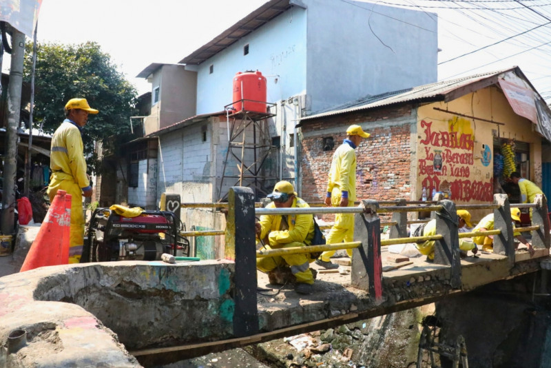 Satpel Bina Marga Kecamatan Menteng Perbaiki Jembatan Penghubung Antarkampung