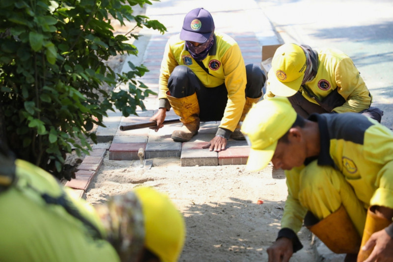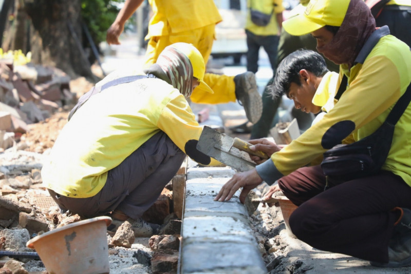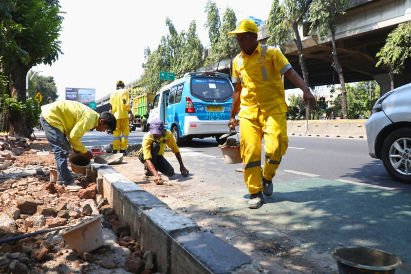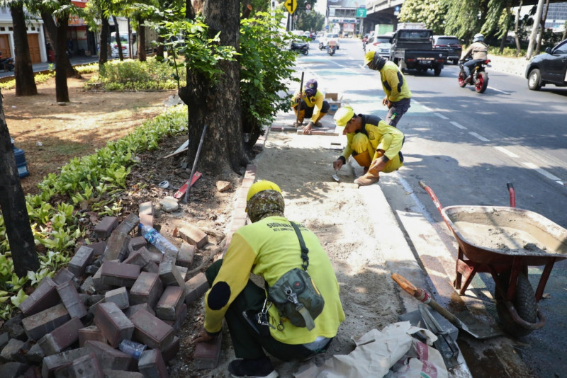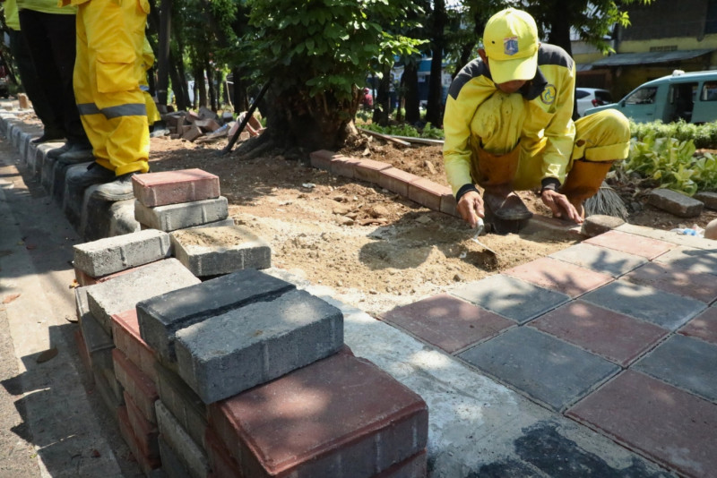 Sudin Bina Marga Jaktim Perbaiki Trotoar di Pisangan Baru