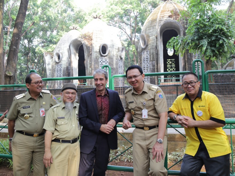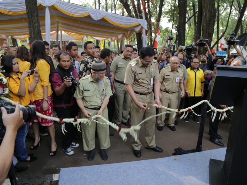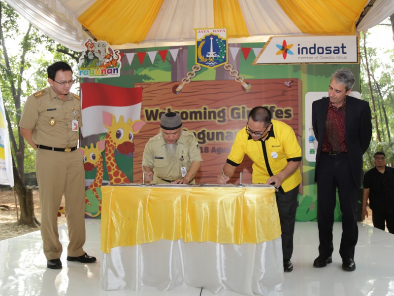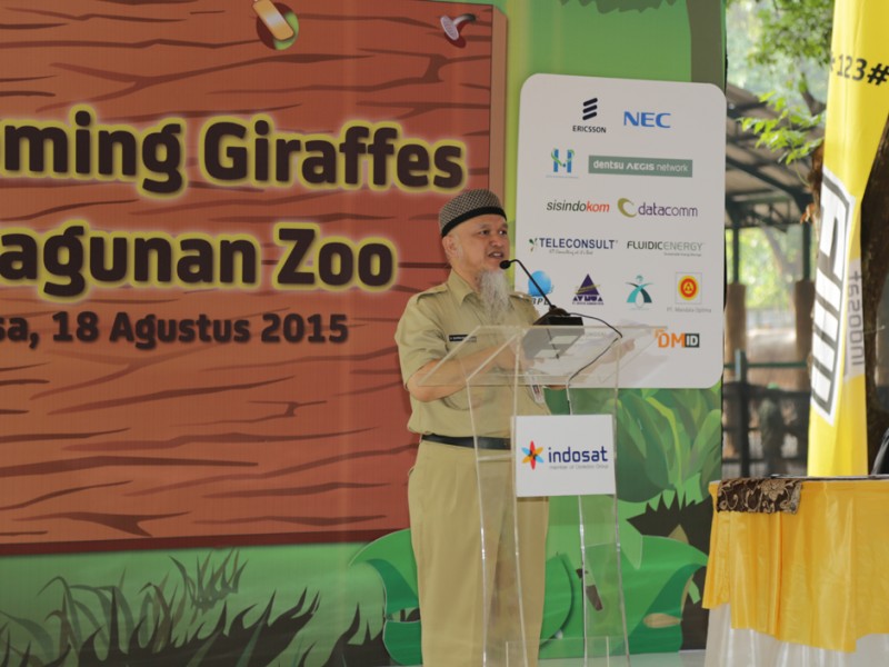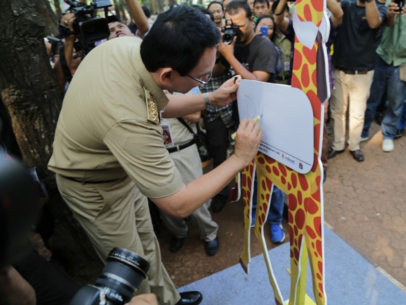 Gubernur DKI Jakarta, Basuki Tjahaja Purnama memberikan nama Dirgah dan Ayuri70 untuk sepasang Jerapah yang didatangkan dari Tarongga Zoo, Sydney, Australia, Selasa (18/08/2015). Sepasang Jerapah ini melengkapi koleksi Taman Margasatwa Ragunan (TMR) di Jalan Harsono RM, Pasar Minggu, Jakarta Selatan. (Foto: Yopie/beritajakarta.com)