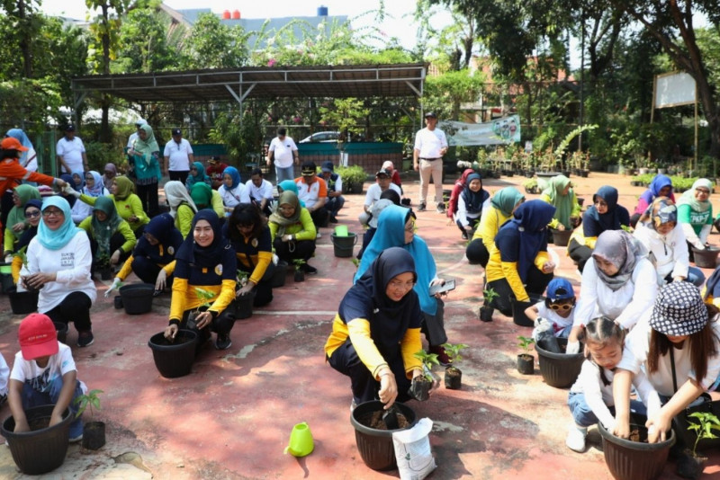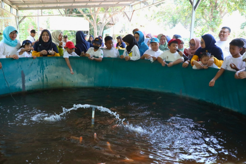 Dharma Wanita Persatuan (DWP) Badan Pengembangan Sumber Daya Manusia (BPSDM) bersinergi dengan Dinas KPKP DKI Jakarta menggelar kegiatan urban farming di Pusat Pelatihan Pertanian dan Perdesaan Swadaya (P4S) Mawar, Kebon Kosong, Kemayoran, Jakarta Pusat, Jumat (29/9). Kegiatan urban farming ini dihadiri Ketua DWP DKI Jakarta, Endang Lestari Joko. Dalam kegiatan ini belasan siswa PAUD dan anggota DWP BPSDM DKI Jakarta tampak antusias mengikuti kegiatan urban farming yang meliputi menanam benih cabai, memberi makan ikan, panen sayur dan membuat minum olahan hasil panen.