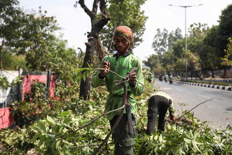 Sudin Tamhut Jaktim Pangkas Pohon di Jalan Raden Inten II
