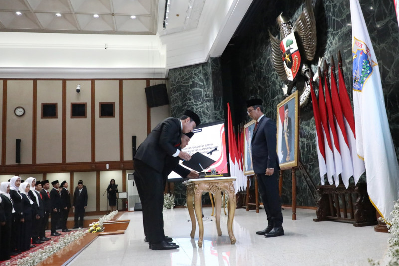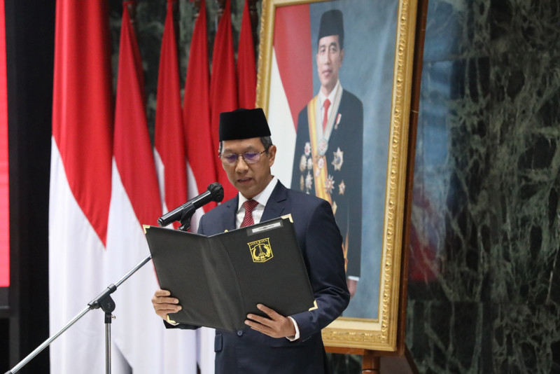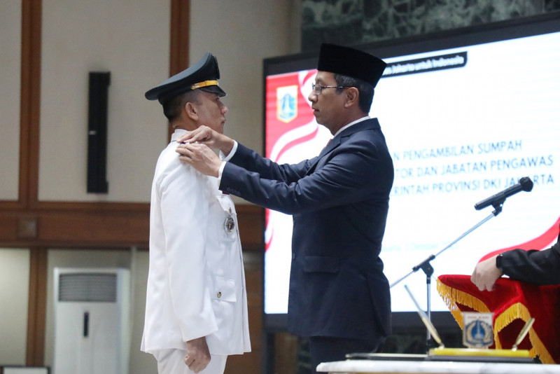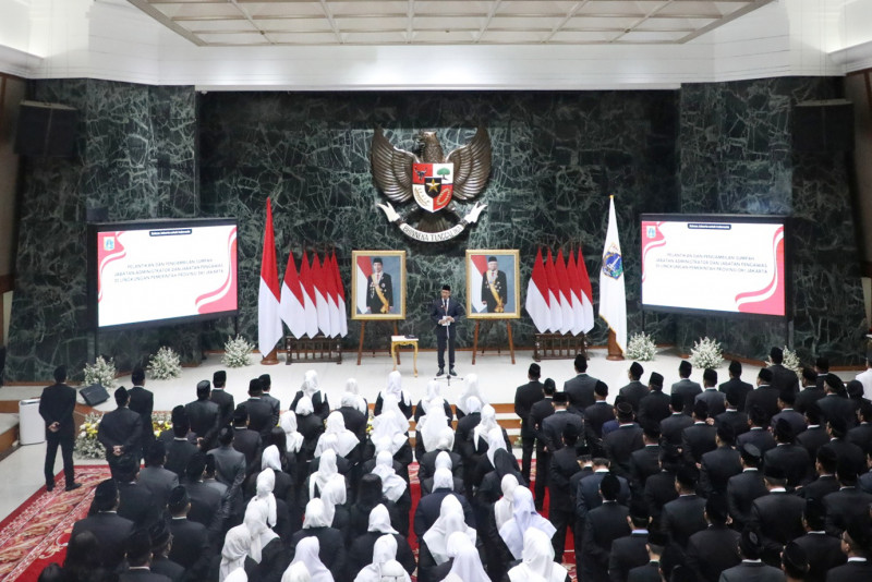 Penjabat (Pj) Gubernur DKI Jakarta, Heru Budi Hartono melantik 309 Pejabat Administrator dan Pengawas di lingkungan Pemerintah Provinsi (Pemprov) DKI Jakarta. Pelantikan dan pengambilan sumpah jabatan dilaksanakan di Balai Agung, Gedung Balai Kota DKI Jakarta, Gambir, Jakarta Pusat, Selasa (3/10).