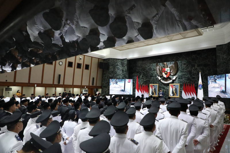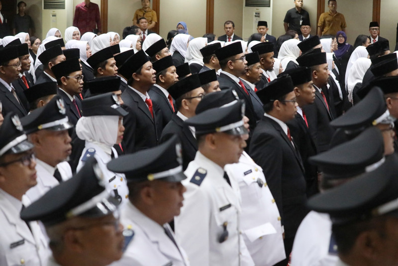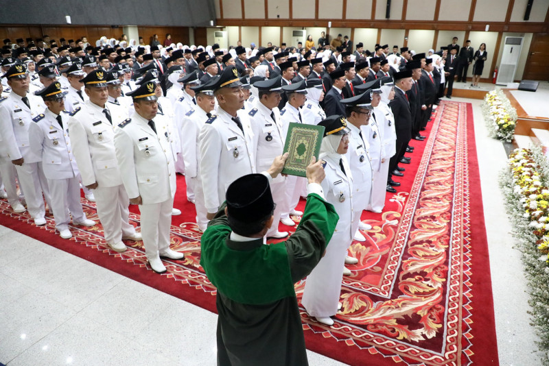 Penjabat (Pj) Gubernur DKI Jakarta, Heru Budi Hartono kembali melantik dan mengambil sumpah jabatan 308 Pejabat Administrator dan Pengawas di lingkungan Pemprov DKI Jakarta, Rabu (4/10). Pejabat yang dilantik yaitu Eselon III sebanyak 25 orang dan Eselon IV sebanyak 283 orang dari Kota Administrasi Jakarta Pusat, Kota Administrasi Jakarta Selatan, dan Dinas Kependudukan dan Pencatatan Sipil Provinsi DKI Jakarta.