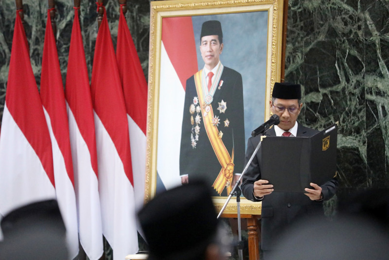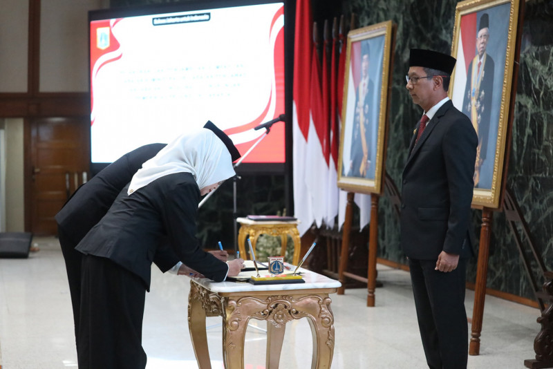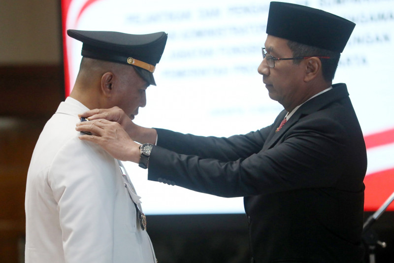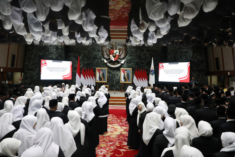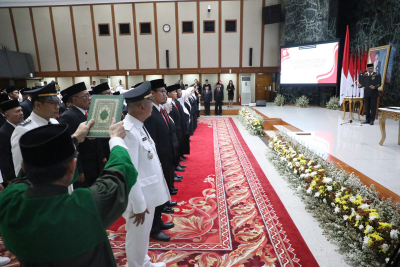 Penjabat (Pj) Gubernur DKI Jakarta, Heru Budi Hartono kembali melantik dan mengambil sumpah jabatan 321 Pejabat Administrator, Pengawas serta Fungsional di lingkungan Pemprov DKI Jakarta, Kamis (4/10). Ratusan aparatur yang dilantik di Balai Kota tersebut terdiri dari 26 pejabat eselon III, 280 pejabat eselon IV serta 13 pejabat fungsional Dinas Kesehatan dan dua pejabat fungsional Dinas Pendidikan.