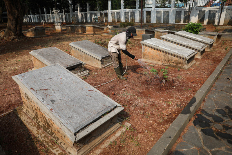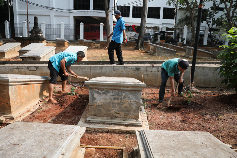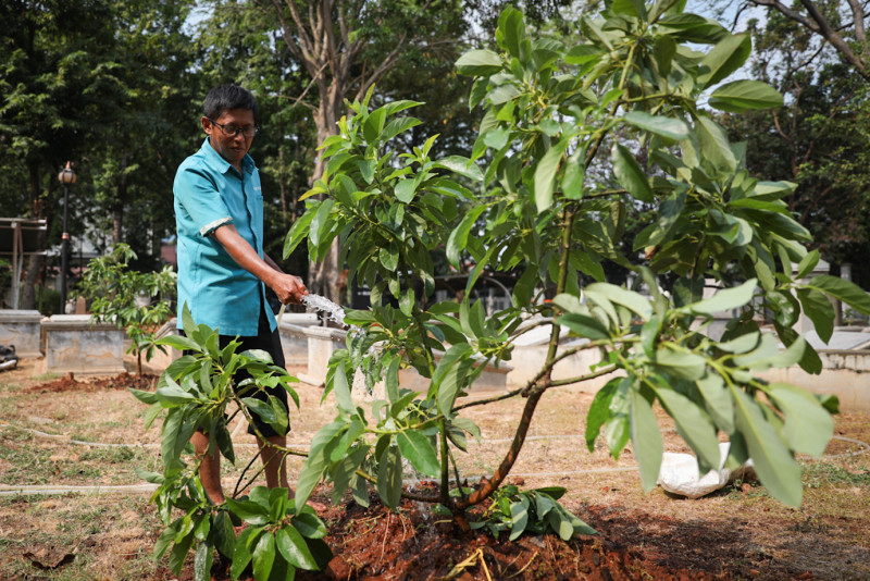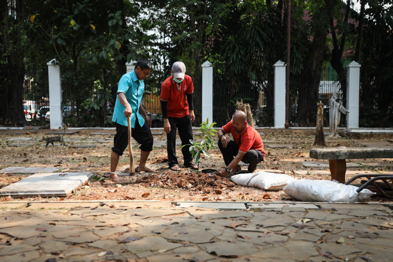 Dinas Ketahanan Pangan, Kelautan dan Pertanian (KPKP) DKI Jakarta melakukan penanaman pohon produktif di Museum Prasasti, Petojo Selatan, Gambir, Jakarta Pusat, Jumat (6/10). Total pohon produktif yang ditanam sebanyak 18 pohon dengan rincian 10 pohon alpukat Cipedak dan delapan pohon anggur.