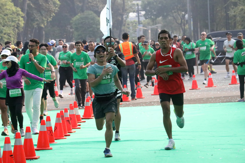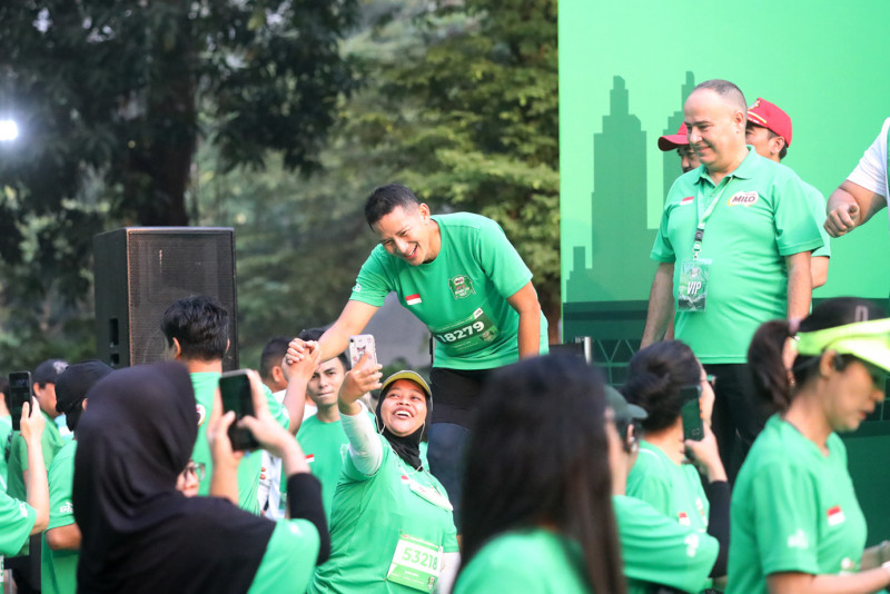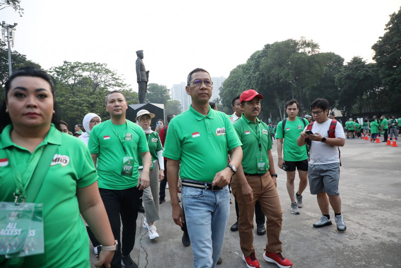 Penjabat (Pj) Gubernur DKI Jakarta, Heru Budi Hartono melepas puluhan ribu pelari dalam event Milo Active Indonesia Race (MAIR) Jakarta Series 2023. Pelepasan peserta lari dilakukan di Plaza Tenggara Gelora Bung Karno, Jakarta Pusat, Minggu (8/10). Turut hadir, Menteri Pemuda dan Olahraga Republik Indonesia, Dito Ariotedjo serta Menteri Pariwisata dan Ekonomi Kreatif Republik Indonesia, Sandiaga Salahuddin Uno.
