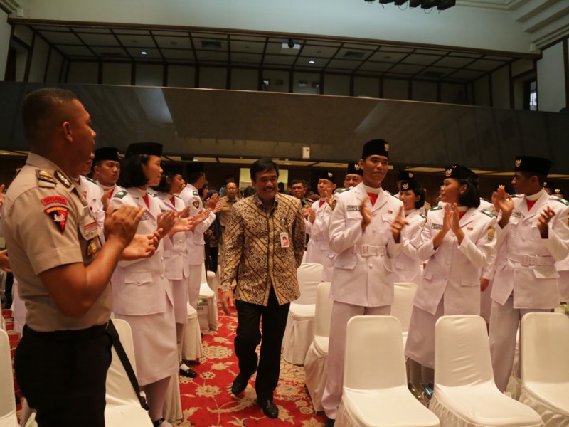Angggota Pasukan Pengibar Bendera Pusaka (Paskibraka) menyambangi Balaikota DKI Jakarta, Rabu (19/08/2015). Dalam kunjungannya, mereka mendapatkan tambahan wawasan dan pencerahan dari Pimpinan Instansi Pemprov DKI Jakarta, dalam hal ini dilakukan Wakil Gubernur DKI Jakarta, Djarot Saiful Hidayat.(Foto: Reza / Beritajakarta.com)