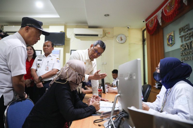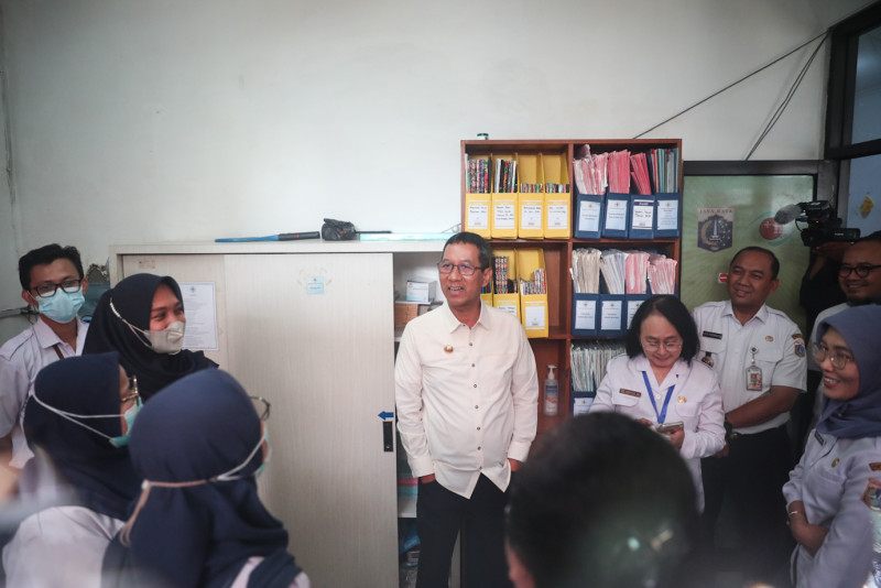 Penjabat (Pj) Gubernur DKI Jakarta, Heru Budi Hartono, melakukan kunjungan ke Puskesmas Pekojan 1 dan Kantor Kelurahan Pekojan di wilayah Kecamatan Tambora, Jakarta Barat, Rabu (11/10). Dalam kunjungan ke dua tempat tersebut, Heru mengecek progres penanganan stunting dan ruang Pelayanan Terpadu Satu Pintu (PTSP) Kelurahan Pekojan.