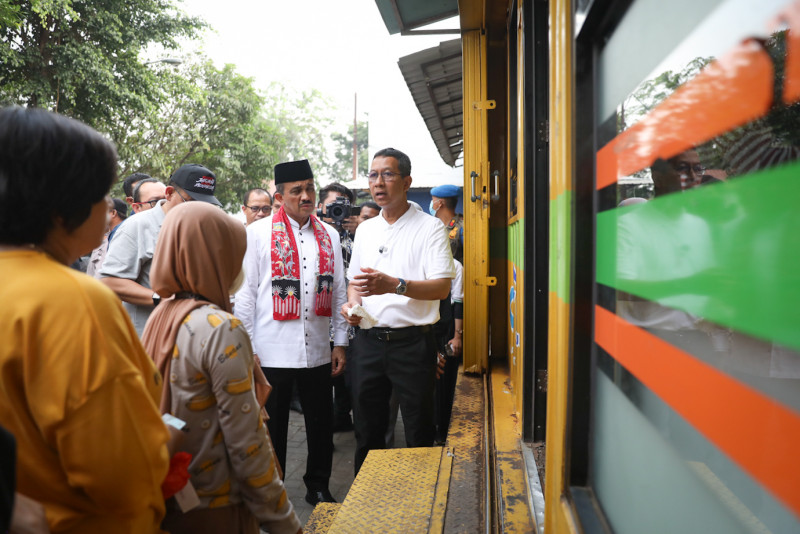 Penjabat (Pj) Gubernur DKI Jakarta, Heru Budi Hartono tinjau Pasar Pondok Bambu, Duren Sawit, Jakarta Timur, Jumat (13/10). Kunjungan tersebut selain untuk memastikan harga sejumlah kebutuhan pokok tetap stabil, Pj Gubernur juga meninjau gerai Jakmart sebagai lokasi penukaran bahan pokok yang menggunakan KJP.