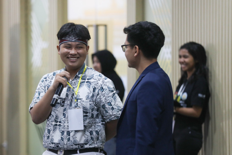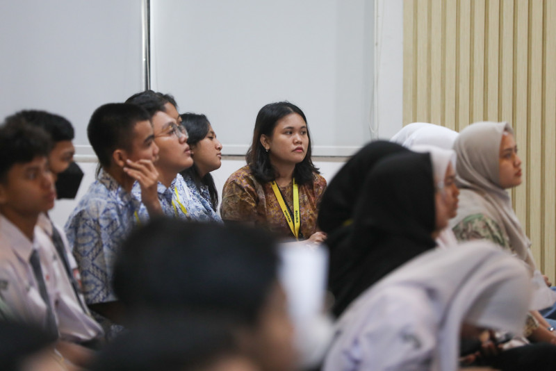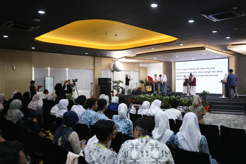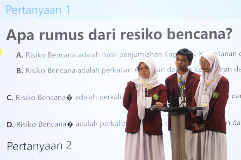 Sejumlah siswa berlomba dalam babak final Cerdas Cermat Kebencanaan Festival Pendidikan Kesiapsiagaan Bencana (Fesdikgana) Provinsi DKI Jakarta 2023 di Gedung Corporate University PT United Tractors Tbk, Cakung, Jakarta Timur, Senin (16/10). Lomba cerdas cermat yang diadakan oleh Badan Penanggulangan Bencana Daerah (BPBD) DKI Jakarta ini mengangkat tema Menuju Satuan Pendidikan siaga Bencana: Inovasi dan Tindakan Preventif untuk Melindungi Masa Depan.