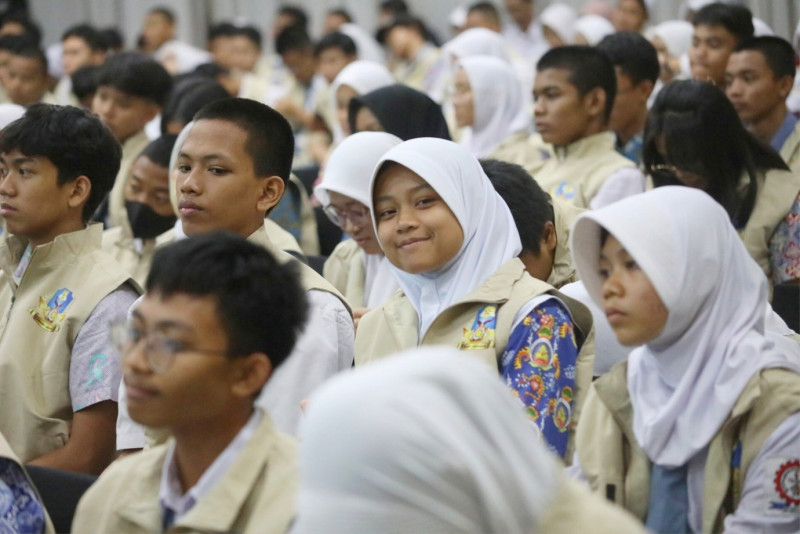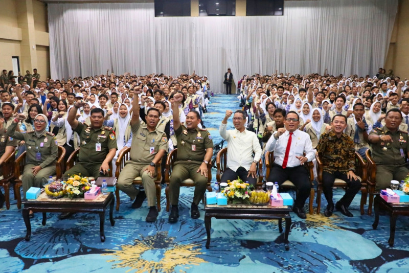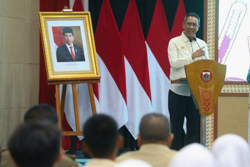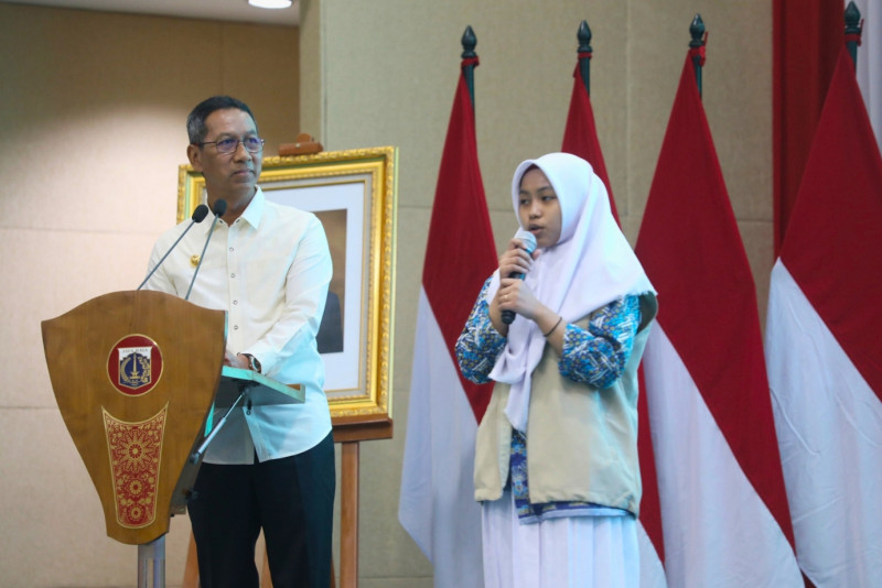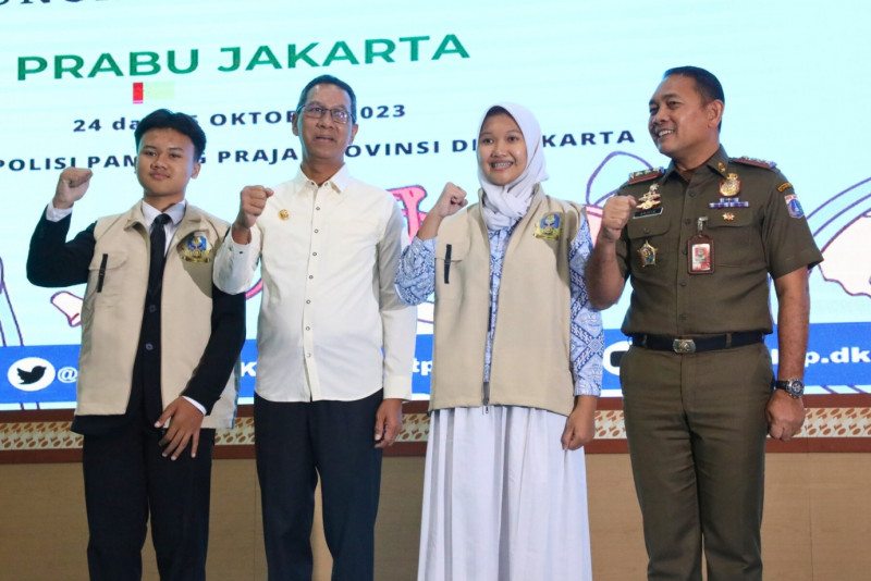 Penjabat (PJ) Gubernur Provinsi DKI Jakarta, Heru Budi Hartono resmikan Prabu (Pelajar Duta Trantibum) Jakarta Tahun 2023 di Aula Ki Hajar Dewantara, Kantor Dinas Pendidikan Provinsi DKI Jakarta, Jalan Gatot Subroto, Setiabudi, Jakarta Selatan, Selasa (24/10). Sebanyak 500 pelajar SMA dan sederajat dari 20 sekolah yang dilantik sebagai Prabu Jakarta diharapkan menjadi pelopor, dan agen yang bisa merubah untuk kelangsungan trantibum yang baik.