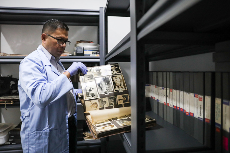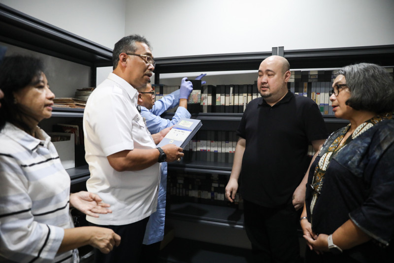 Tim arsiparis Dinas Perpustakaan dan Kearsipan (Dispusip) DKI Jakarta mengunjungi kediaman Badai Danindha Putra Saelan selaku keluarga tokoh perfilman nasional Usmar Ismail di Jalan Cempaka Putih Tengah, Kecamatan Cempaka Putih, Jakarta Pusat, Rabu (25/10). Kunjungan tersebut dalam rangka identifikasi dan peninjauan awal terhadap arsip milik keluarga Usmar Ismail terkait program penyelamatan arsip daerah sehubungan dengan Surat Kepala Dinas Perpustakaan dan Kearsipan Provinsi DKI Jakarta Nomor e-0822/KA.03.00.