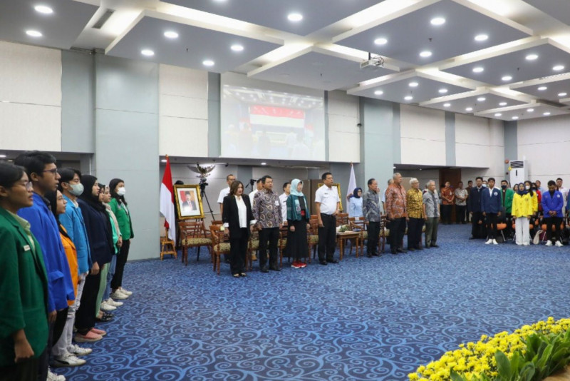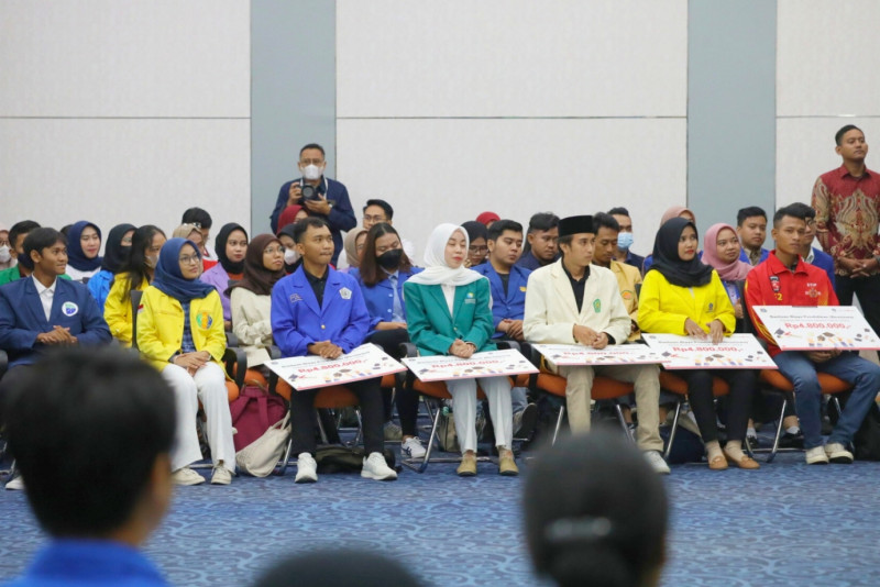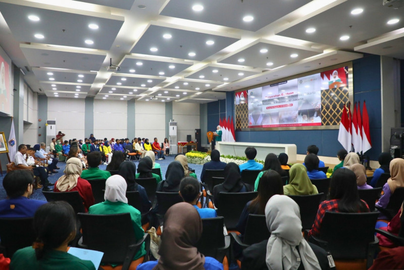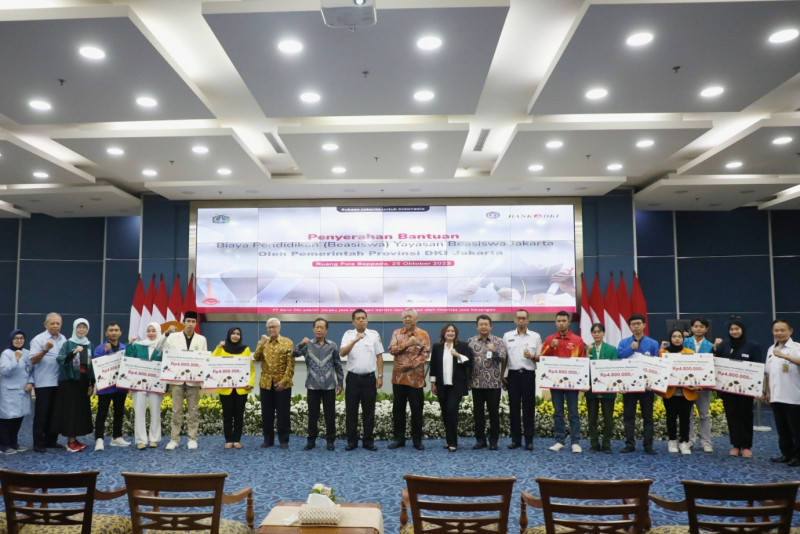 Sekretaris Daerah (Sekda) Provinsi DKI Jakarta, Joko Agus Setyono menyerahkan secara simbolis bantuan biaya pendidikan (beasiswa) kepada 1.142 orang mahasiswa di Ruang Pola Bappeda, Balai Kota DKI Jakarta, Gambir, Jakarta Pusat, Rabu (25/10). Penyerahan bantuan beasiswa ini melalui Yayasan Beasiswa Jakarta bagi mahasiswa yang mulai duduk di semester tiga dan mempunyai prestasi dengan IPK 3,0 serta berdomisili dan berkuliah di DKI Jakarta.