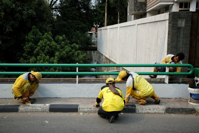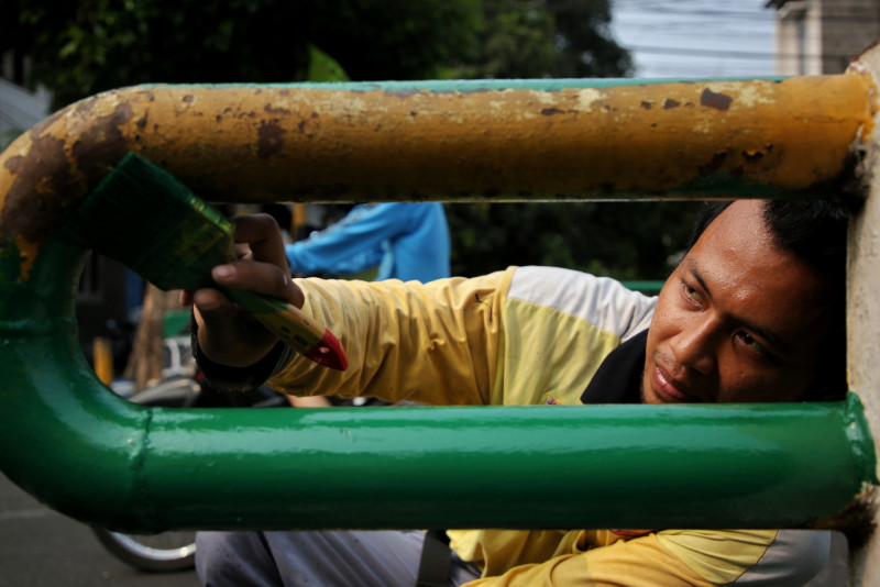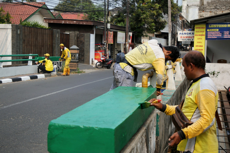 Satuan pelaksana (Satpel) Bina Marga Kecamatan Pasar Minggu mempercantik jembatan di Jalan Baung, Kebagusan, Pasar minggu, Jakarta Selatan. Jembatan di percantik dengan dilakukan pengecatan ulang pada relling jembatan.