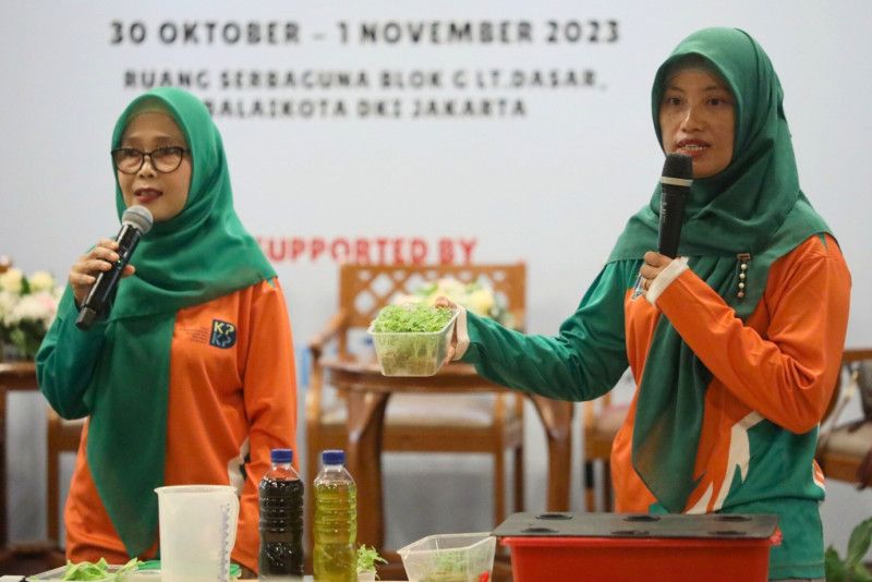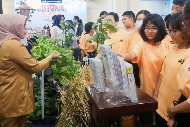 Melihat beragam kegiatan menarik di hari kedua Festival Urban Farming Jakarta 2023, di Gedung Blok G Balai Kota DKI Jakarta Selasa (31/10). Dihari kedua festival urban farming ini dilakukan bermacam kegitan menarik seperti bimbingan teknis tanaman hidroponik, talkshow, bimtek merangkai bunga hingga kegiatan pengobatan khusus untuk hewan peliharaan.