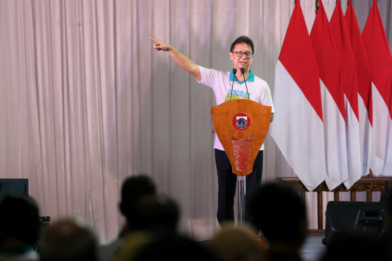 Penjabat (Pj) Gubernur DKI Jakarta, Heru Budi Hartono menghadiri Launching Gerakan Anak Sehat, yang dibuka oleh Menteri Kesehatan Republik Indonesia (Menkes RI), Budi Gunadi Sadikin di RPTRA Utama, Cengkareng Barat, Jakarta Barat, Selasa (31/10). Gerakan Anak Sehat ini merupakan upaya pemerintah daerah untuk membimbing serta mengawasi orang tua dalam memberikan makanan tambahan bagi anak sebagai upaya mengatasi gizi buruk.
