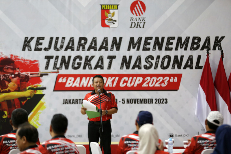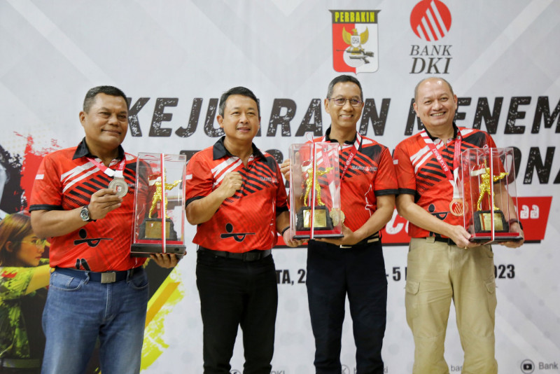 Penjabat (Pj) Gubernur DKI Jakarta, Heru Budi Hartono sukses menyabet Juara 1 pada Kejuaraan Menembak Tingkat Nasional Bank DKI Cup 2023 yang berlangsung di Lapangan Tembak Bung Karno, Jalan Gelora, Senayan, Jakarta Pusat, Minggu (5/1). Kejuaraan ini merupakan sinergisitas antara Pemprov DKI Jakarta dan Pengurus Besar Persatuan Olahraga Menembak dan Berburu Indonesia (PB Perbakin).