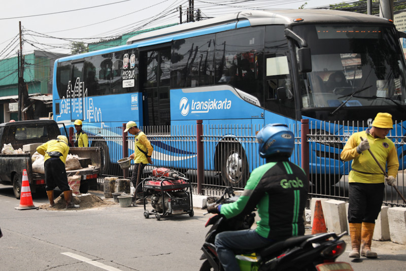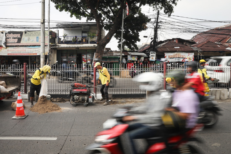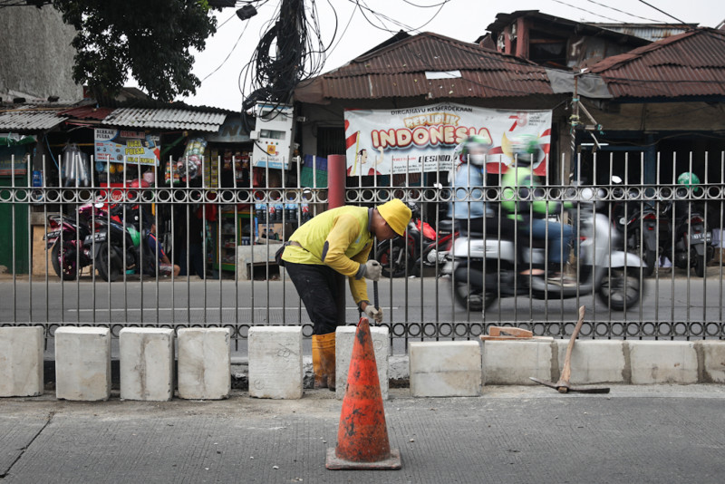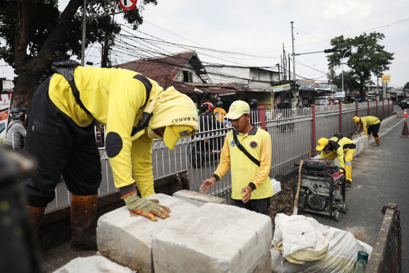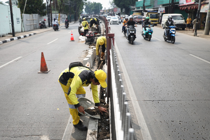 Satgas Bina Marga Kramat Jati Revitalisasi Kanstin di Median Jalan Raya Bogor