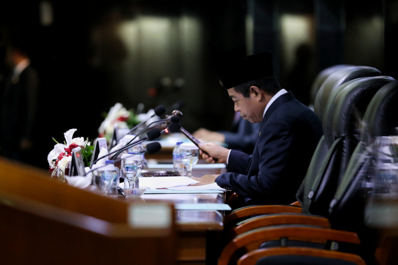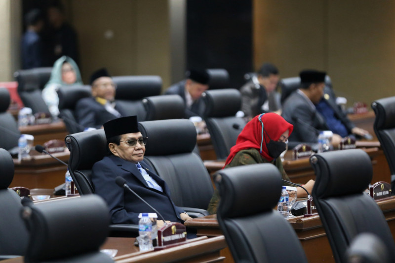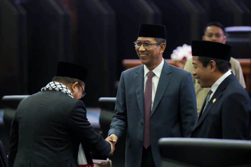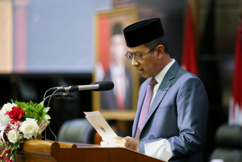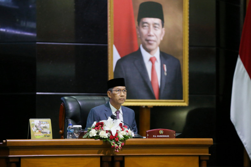 Dewan Perwakilan Rakyat Daerah (DPRD) DKI Jakarta menggelar Rapat Paripurna dalam rangka Penyampaian Rancangan Peraturan Daerah terhadap Pencabutan Peraturan Daerah Nomor 11 Tahun 1992 Tentang Penataan dan Pengelolaan Kepulauan Seribu Kotamadya Jakarta Utara di Ruang Rapat Paripurna DPRD DKI Jakarta, Jalan Kebon Sirih, Gambir, Jakarta Pusat, Selasa (7/10). Rancangan disampaikan langsung oleh Pj Gubernur DKI Jakarta Heru Budi Hartono.