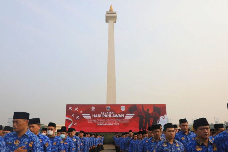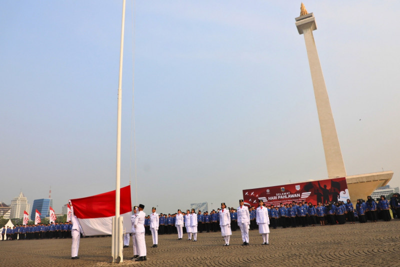Pemerintah Provinsi (Pemprov) DKI Jakarta menggelar upacara peringatan Hari Pahlawan Nasional di Silang Monas, Gambir, Jakarta Pusat, Jumat (10/11). Upacara yang dipimpin oleh Sekretaris Daerah Provinsi DKI Jakarta, Joko Agus Setyono, ini mengusung tema \" Semangat Pahlawan Untuk Masa Depan Bangsa Dalam Memerangi Kemiskinan dan Kebodohan\".