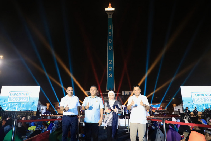 Perusahaan Umum Daerah (Perumda) PAM Jaya secara resmi meluncurkan layanan call center 1500223 di di Silang Monas, Gambir, Jakarta Pusat, Jumat (10/11). Seremonial launching layanan call center PAM Jaya dilakukan Sekretaris Daerah (Sekda) DKI Jakarta, Joko Agus Setyono bersama Ketua DPRD DKI Jakarta, Prasetio Edi Marsudi; Wakil Ketua DPRD DKI Jakarta, Zita Anjani; dan Direktur Utama Perumda PAM Jaya, Arief Nasrudin.
