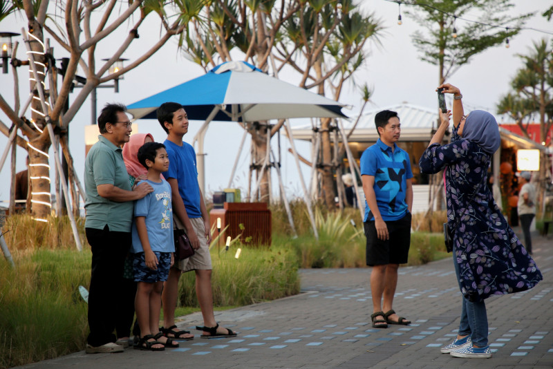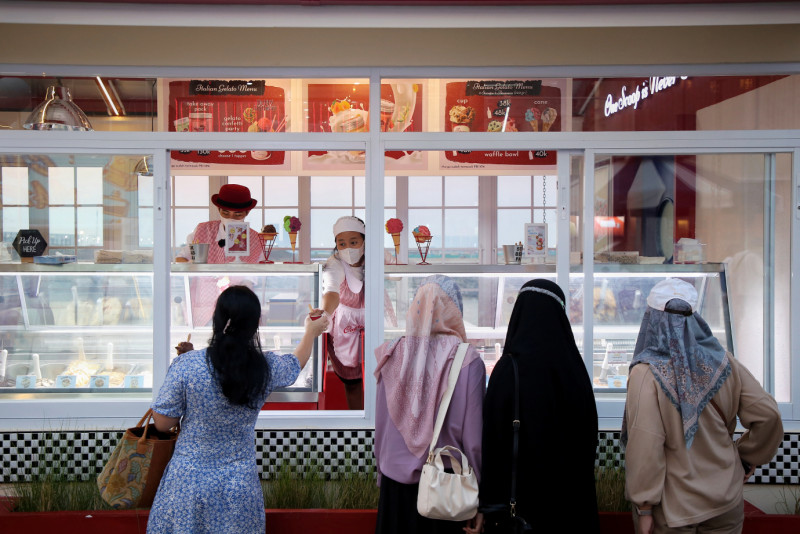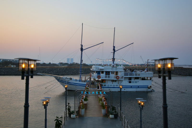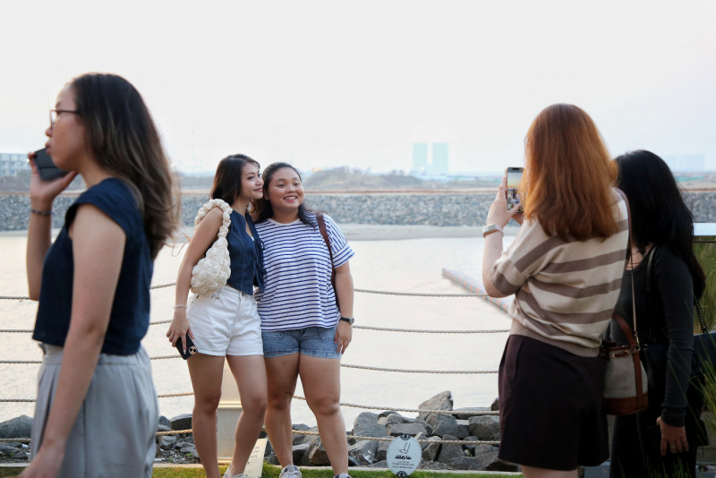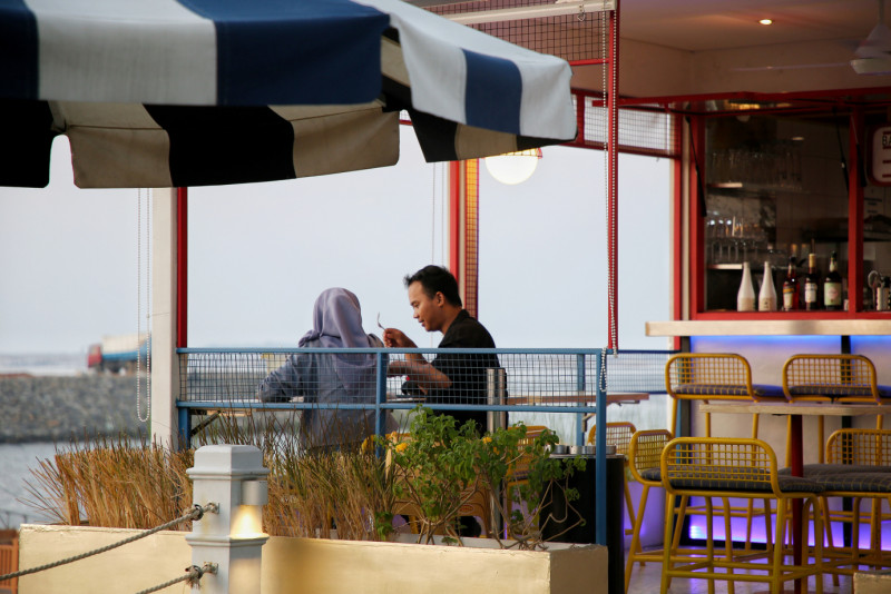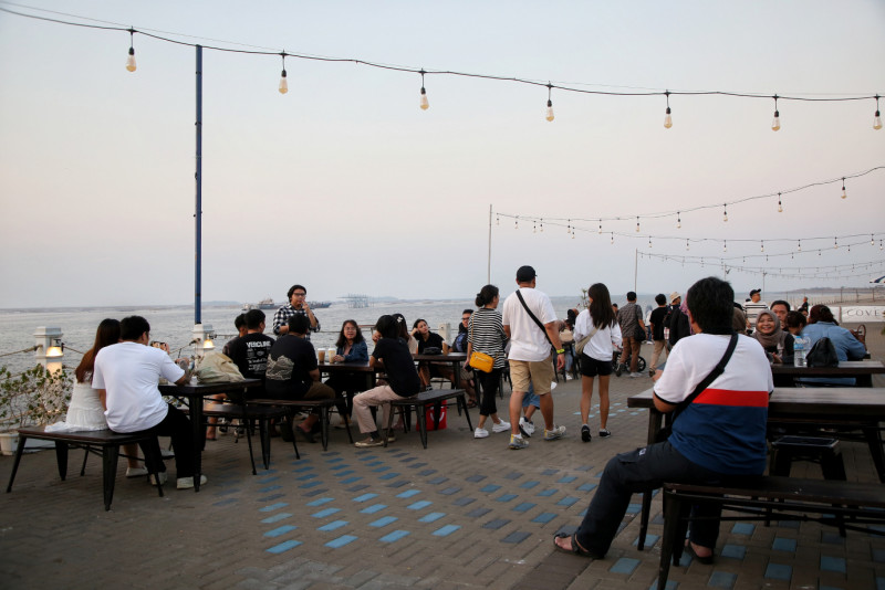 Menikmati waktu sore di Cove at Batavia PIK, Kamal Muara, Penjaringan, Jakarta Utara. Cove at Batavia PIK merupakan salah satu tempat hangout berkonsep outdoor dengan desain bangunan ala Los Angeles, Amerika Serikat yang sangat Instagramable.