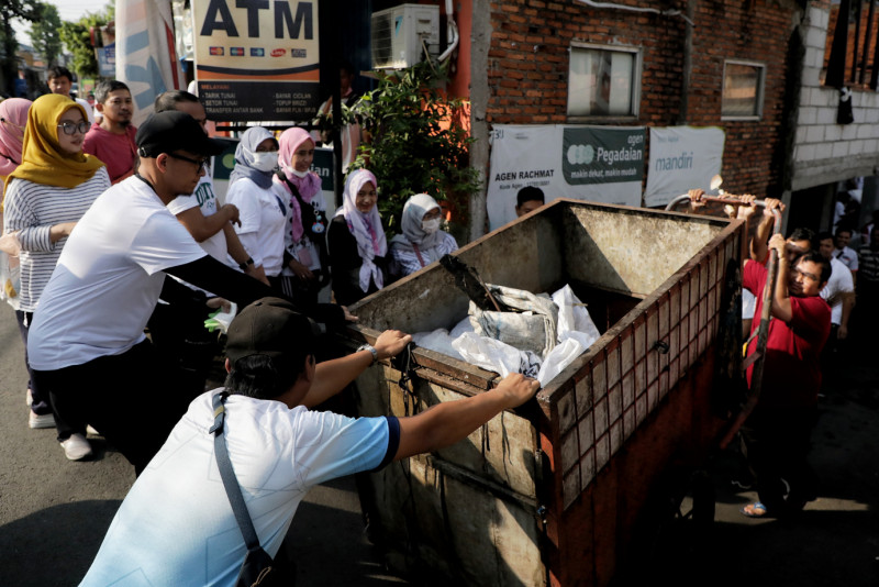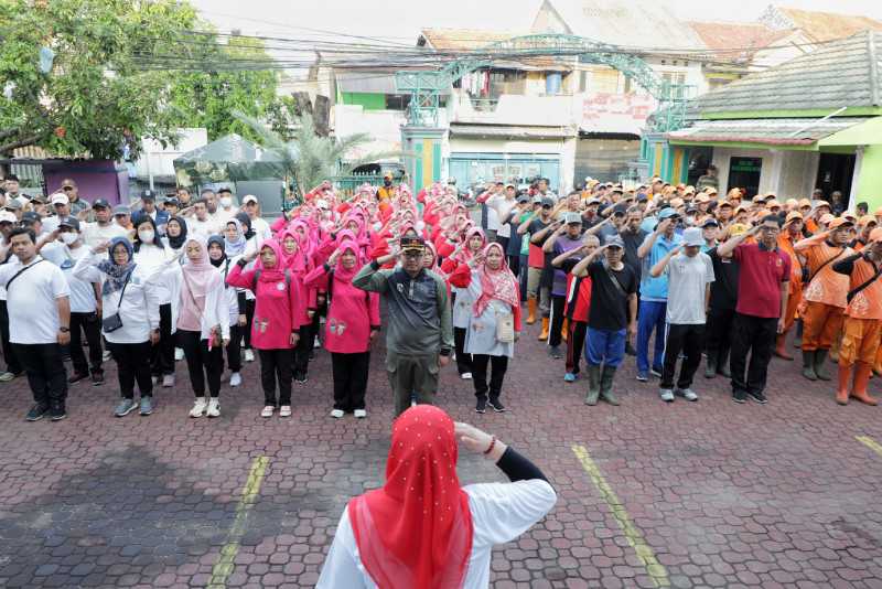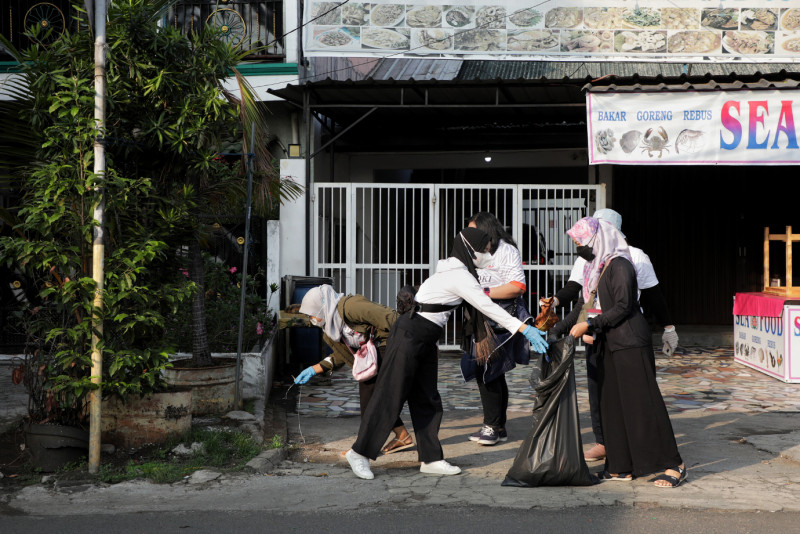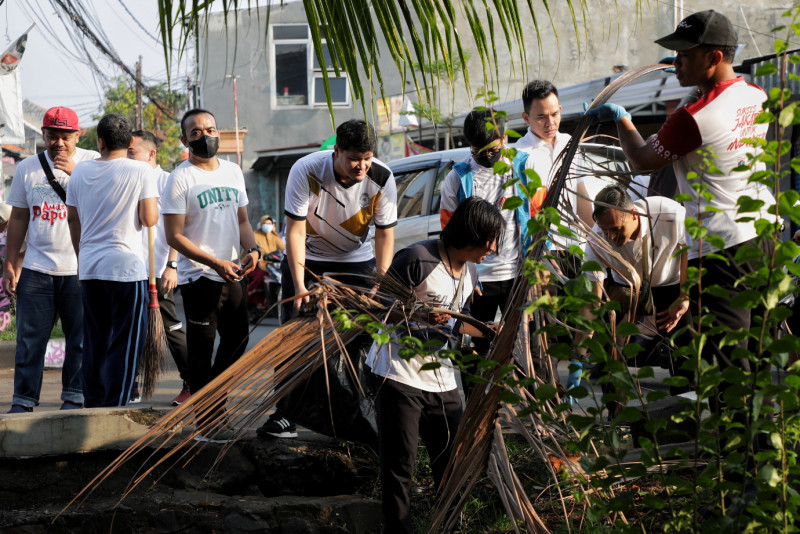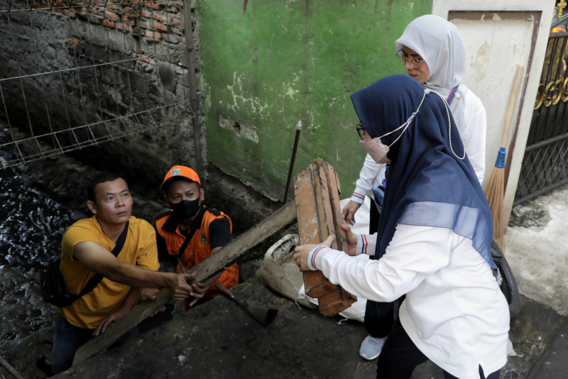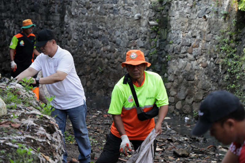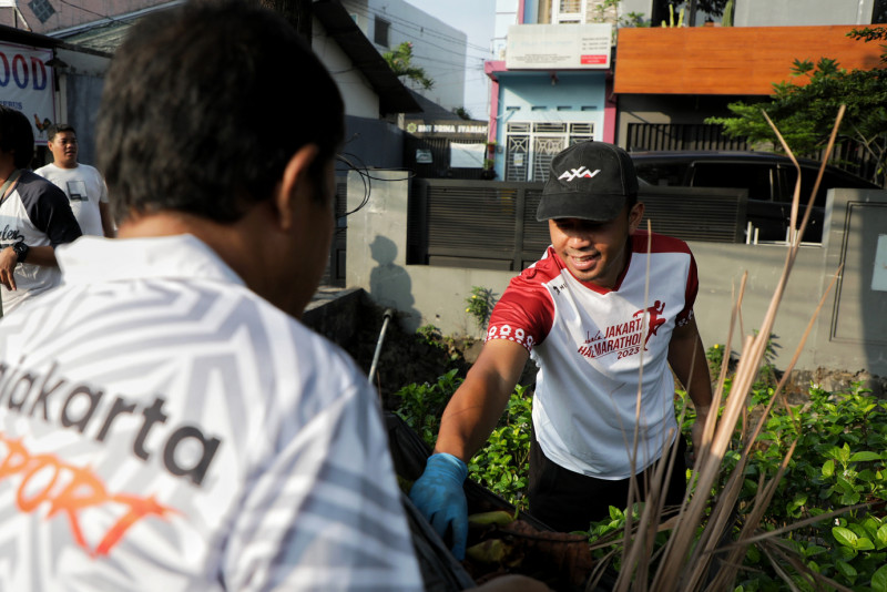 Tim Dinas Komunikasi, Informasi dan Statistik (Diskominfotik) DKI bergabung melakukan kegiatan kerja bakti di Jalan Kalisari lll, Kelurahan Kalisari, Pasar Rebo, Jakarta Timur, Minggu (19/11). Pemerintah Provinsi DKI Jakarta mengajak semua lapisan masyarakat serta ASN DKI Jakarta melaksanakan kegiatan Bakti Kita Untuk Jakarta secara serentak. Hal ini dilakukan sebagai langkah siaga dalam menghadapi musim penghujan sekaligus membangkitkan kembali semangat gotong royong yang menjadi budaya Indonesia. (Foto: Andri Widiyanto/beritajakarta.id)