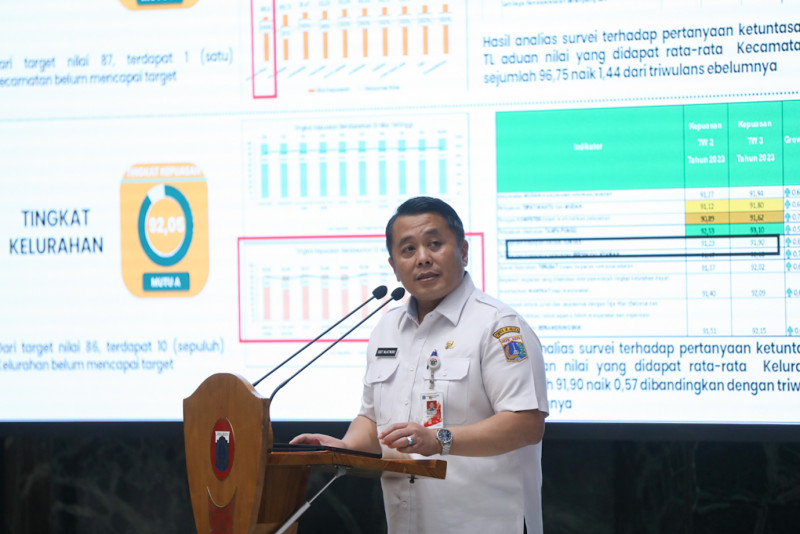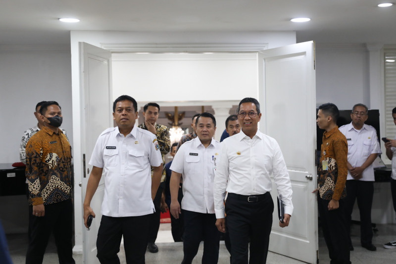 Penjabat (Pj) Gubernur DKI Jakarta, Heru Budi Hartono memberikan arahan dalam acara townhall meeting di Balai Agung DKI Jakarta, Jalan Medan Merdeka Selatan, Gambir, Jakarta Pusat, Rabu (22/11). Kegiatan yang digelar dalam rangka penyelenggaraan kinerja kewilayahan tersebut dihadiri oleh sejumlah Kepala OPD terkait, 267 Lurah, dan 44. (Foto: Nugroho Sejati/beritajakarta.id)