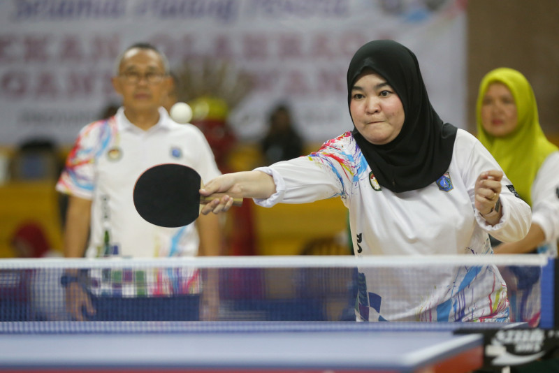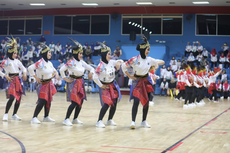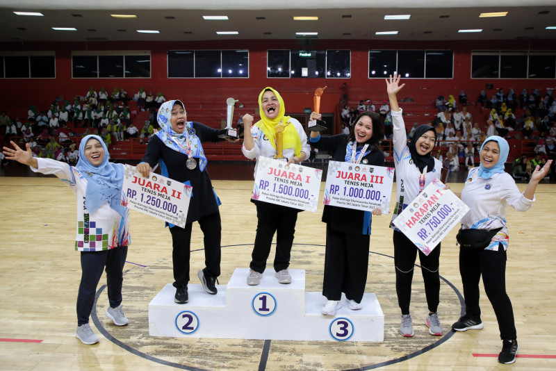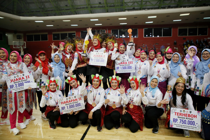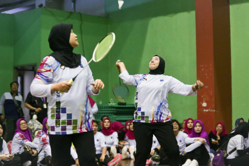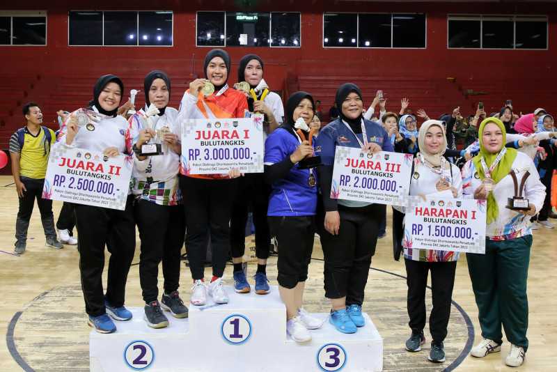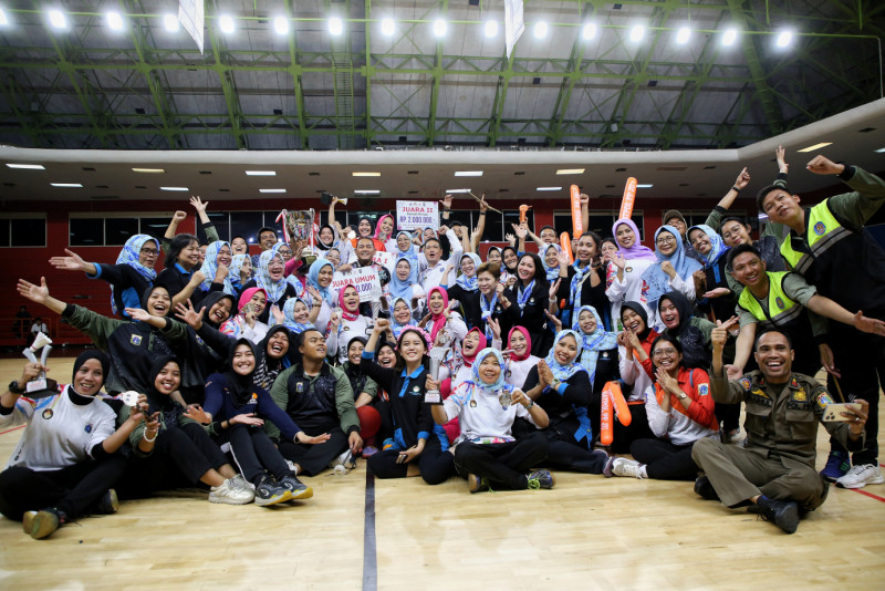 Melihat aksi para peserta pada Pekan Olahraga Organisasi Wanita Dharma Wanita Persatuan ( DWP ) Provinsi DKI Jakarta tahun 2023 di Gelanggang Olahraga (GOR) Soemantri Brodjonegoro, Jalan H. R. Rasuna Said, Karet Kuningan, Kamis (23/11). DWP Satpol PP DKI Jakarta keluar sebagai juara umum setelah berhasil memenangkan setiap cabang olahraga yang diperlombakan. (Foto: Andri Widiyanto/beritajakarta.id)