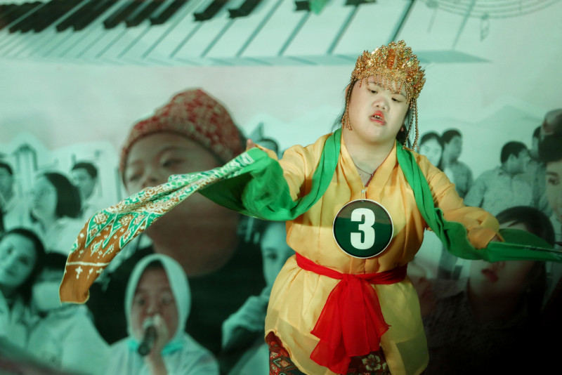 Sebanyak 12 peserta mengikuti kegiatan kompetisi seni dan budaya di sebuah hotel ternama di bilangan Kemang, Jakarta Selatan, Sabtu (25/11). Kegiatan bertajuk \"Art and Culture Talent Competition: Especially with Disabilities\" ini diselenggarakan oleh Federasi Olahraga Kreasi Budaya Indonesia (FOKBI) DPD DKI Jakarta.