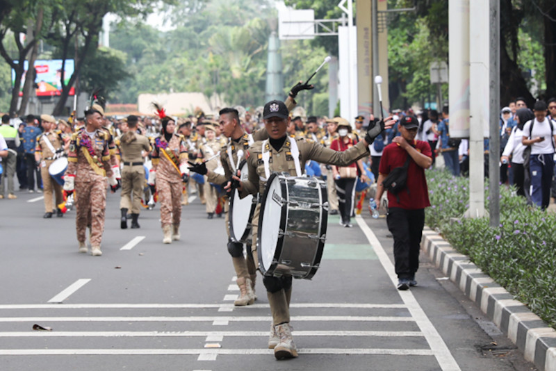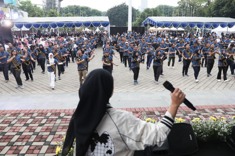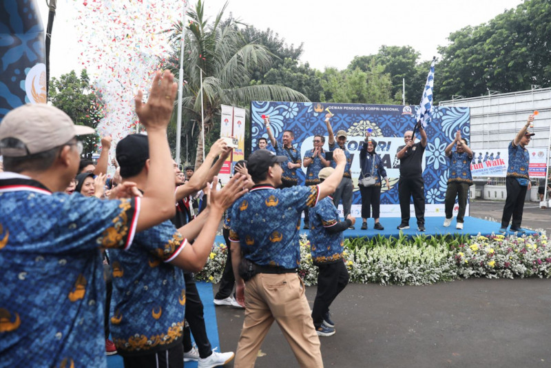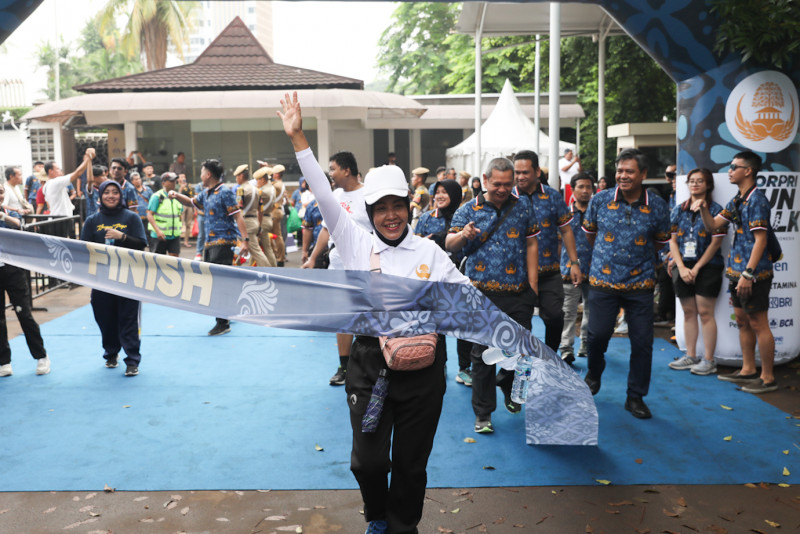 Meriahkan HUT ke-52 Korps Pegawai Republik Indonesia (KORPRI) sebanyak 4.000 Aparatur Sipil Negera (ASN) mengikuti jalan sehat (fun walk) yang dimulai di Kantor Kementerian Pemuda dan Olahraga (Kemenpora), Tanah Abang, Jakarta Pusat, Minggu (26/11). Para peserta melakukan jalan sehat sejauh 3,52 kilometer melintasi Jalan Gerbang Pemuda, Jalan Gatot Subroto, Jalan Palmerah Timur, dan Jalan Gelora. (Foto: Nugroho Sejati/beritajakarta.id)
