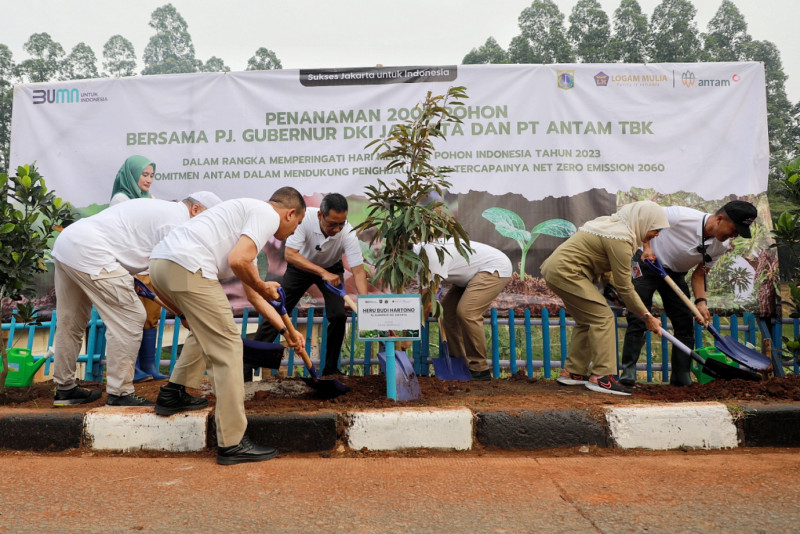 Pemprov DKI Jakarta bersama PT Antam Tbk bersinergi melakukan penanaman 2.000 pohon dan penataan kawasan di Taman Interaksi, Kelurahan Duren Sawit, Kecamatan Duren Sawit, Jakarta Timur, Senin (27/11). Kegiatan ini dilakukan dalam rangka menyambut Hari Menanam Pohon Indonesia tahun 2023. (Foto: Andri Widiyanto/beritajakarta.id)