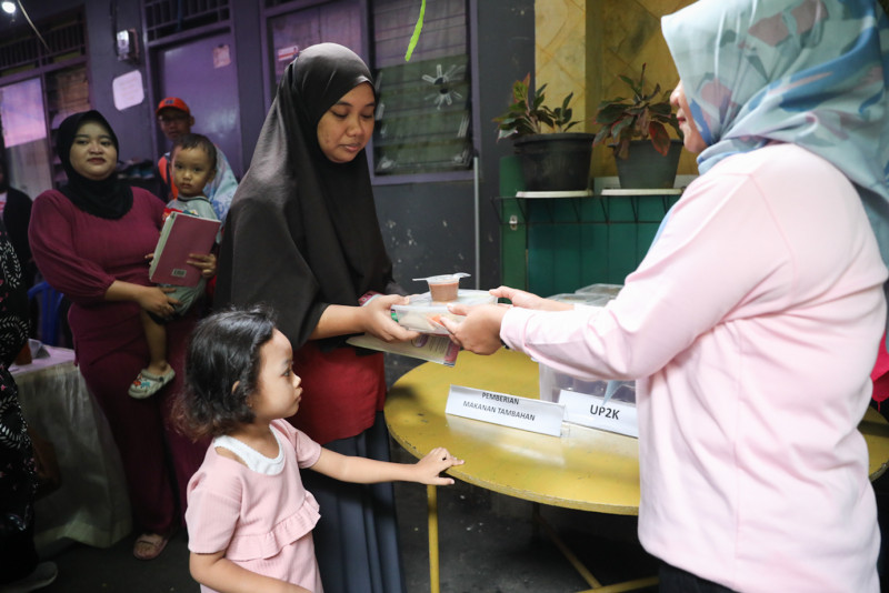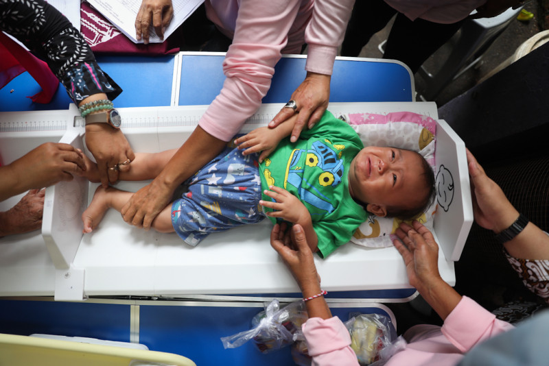 Sebanyak 428 balita mendapatkan layanan kesehatan gratis di posyandu balita yang tersebar di RW 012, Pela Mampang, Mampang Prapatan, Jakarta Selatan, Senin (27/11). Layanan kesehatan balita gratis itu ratusan balita juga diberikan makanan tambahan bergizi. (Foto: Nugroho Sejati/beritajakarta.id).