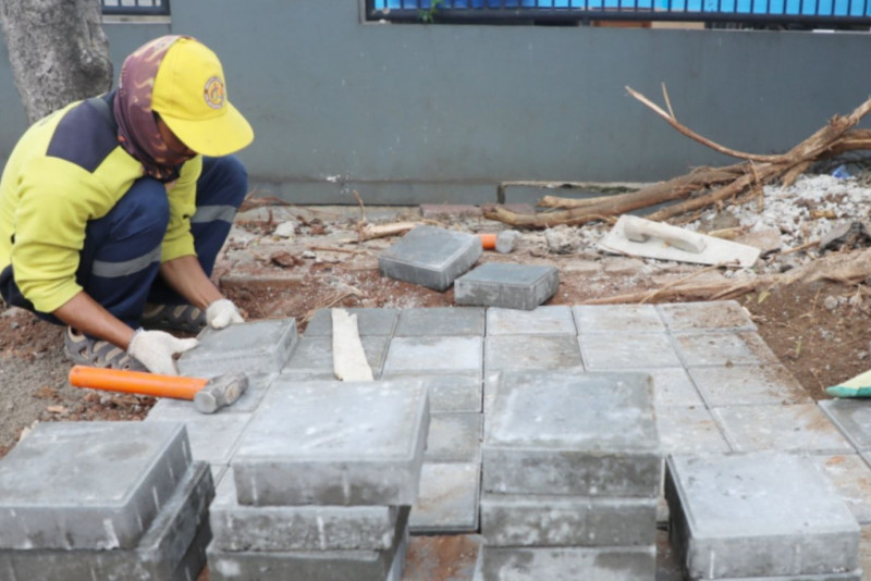 Trotoar di Jalan Pondok Kelapa Raya Diperbaiki