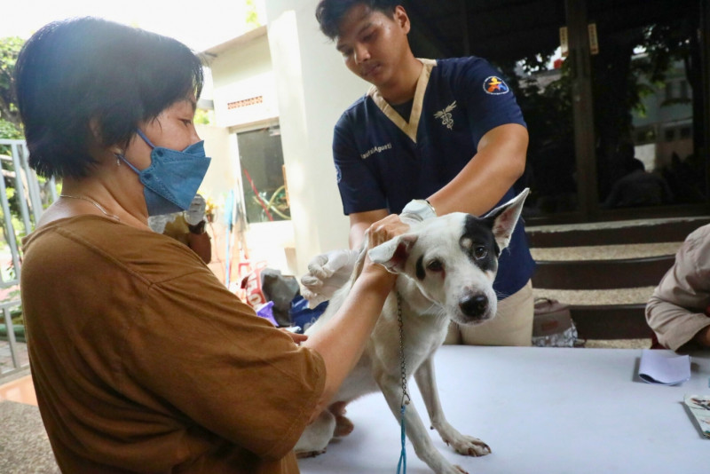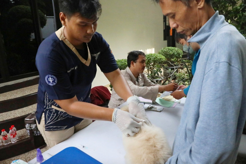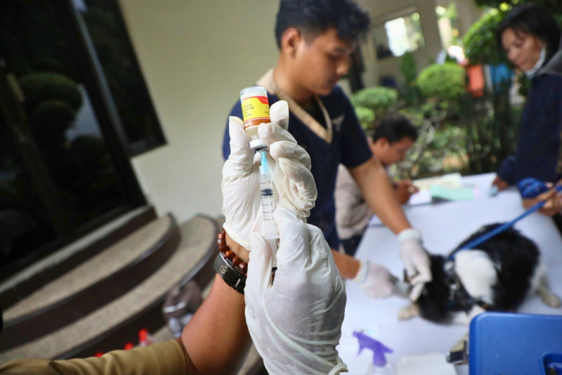 17 hewan penular rabies (HPR) di kantor RW 09 Jalan Gading Elok Timur VIII , Kelapa Gading Timur, Kelapa Gading, Jakarta Utara berhasil divaksinasi rabies oleh petugas Suku Dinas Ketahanan Pangan Kelautan, dan Pertanian (KPKP) Jakarta Utara, Selasa (28/11). 17 HPR berhasil divaksin terdiri dari 12 ekor anjing dan 5 ekor kucing ini merupakan upaya mempertahankan Jakarta sebagai kota bebas Rabies. (Foto: Mochamad Tresna Suheryanto/beritajakarta.id)
