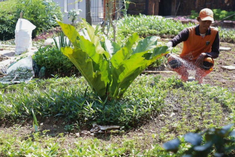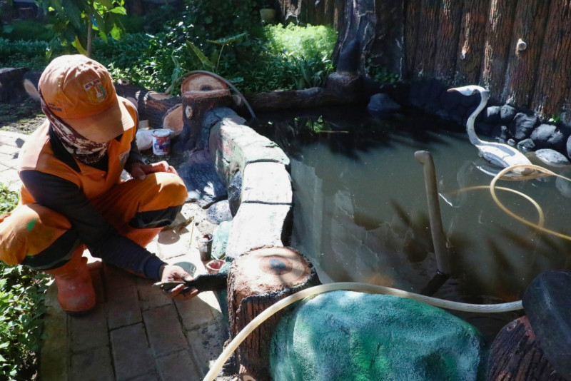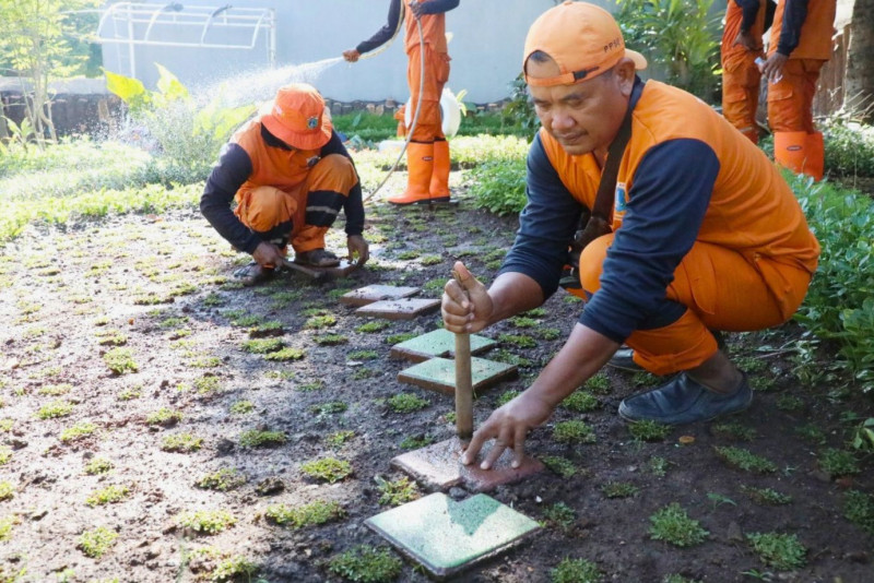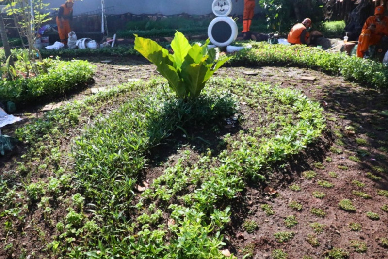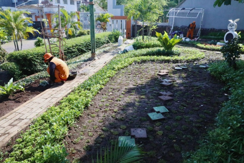 Sebanyak tujuh petugas Penanganan Prasarana dan Sarana Umum (PPSU) Kelurahan Pondok Kopi membuat taman di Jalan Pondok Kopi Raya, Kelurahan Pondok Kopi, Duren Sawit, Jakarta Timur, Rabu (29/11). Taman yang memiliki luas 300 meter persegi ini berbagai jenis tanaman hias mulai dari cemara air, widelia, ginseng Jawa, reulia ungu, adam hawa, gandarusa hijau, patah tulang putih, hingga Anturium berhasil ditanami petugas PPSU Pondok Kopi. Pembuatan Taman ini merupakan bagian dari penataan wilayah triwulan ke empat. (Foto: Mochamad Tresna Suheryanto/beritajakarta.id)