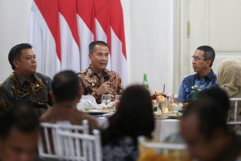 Pemprov DKI Jakarta bersinergi dengan pemerintah daerah lainnya, yakni Provinsi Banten, Provinsi Jawa Barat, Provinsi Jawa Tengah, Kota Bogor, Kota Depok, serta Kota Bekasi melalui High Level Meeting (HLM) Tim Pengendali Inflasi Daerah (TPID) dalam rangka mengendalikan inflasi menjelang akhir tahun di Balai Kota DKI Jakarta, Jalan Medan Merdeka Selatan, Gambir, Jakarta Pusat, Rabu (29/11). Sinergi ini sejalan dengan arahan Menteri Dalam Negeri (Mendagri) Tito Karnavian agar setiap daerah mampu mengendalikan inflasi. (Foto: Andri Widiyanto/beritajakarta.id)