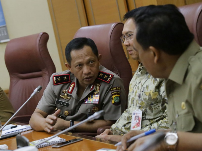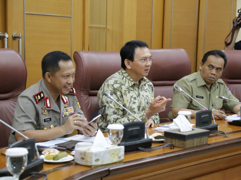 Gubernur DKI Jakarta, Basuki Tjahaja Purnama menggelar rapat dengan Kapolda Metro Jaya, Irjen Pol Tito Karnavian, di Balai Kota DKI Jakarta, Selasa (25/8/2015). Dalam rapat tersebut dilakukan pembahasan terkait pelaksanaan program 5 Tertib dan dukungan dari Polda Metro Jaya.(Foto: Yopie / Beritajakarta.com)