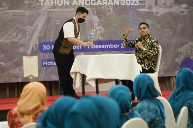 Badan Pengembangan Sumber Daya Manusia (BPSDM) Provinsi DKI Jakarta menggelar kegiatan peningkatan kompetensi bagi anggota Tim Penggerak (TP) PKK dan Dharma Wanita Persatuan (DWP) Provinsi DKI Jakarta di Hotel Millenium Jalan Fachrudin, Kampung Bali, Tanah Abang, Jakarta Pusat, Kamis (30/11). Kegiatan ini digelar selama dua hari 30 November dan 1 Desember 2023 diikuti 66 peserta terdiri dari 36 PKK dan 30 dari DWP DKI Jakarta. Dalam kegiatan ini para peserta diajaekan berbagai materi salah satunya table manner. (Foto: Mochamad Tresna Suheryanto/beritajakarta.id)