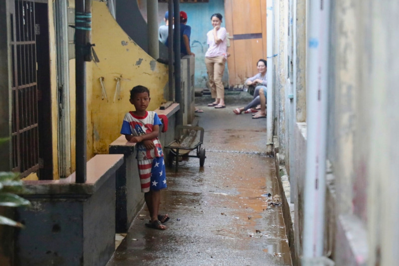 Petugas Penanganan Prasarana dan Sarana Umum (PPSU) membersihkan lumpur dan sampah sisa genangan di permukiman warga Rawajati, Pancoran, Jakarta Selatan, Kamis (30/11). Pembersihan dilakukan seiring surutnya banjir yang menggenang kawasan RW 07. (Foto: Mochamad Tresna Suheryanto/beritajakarta.id)