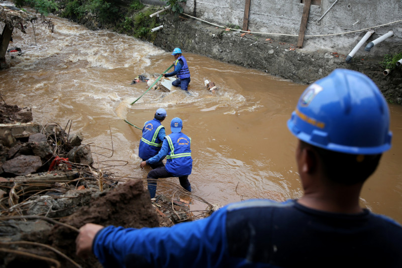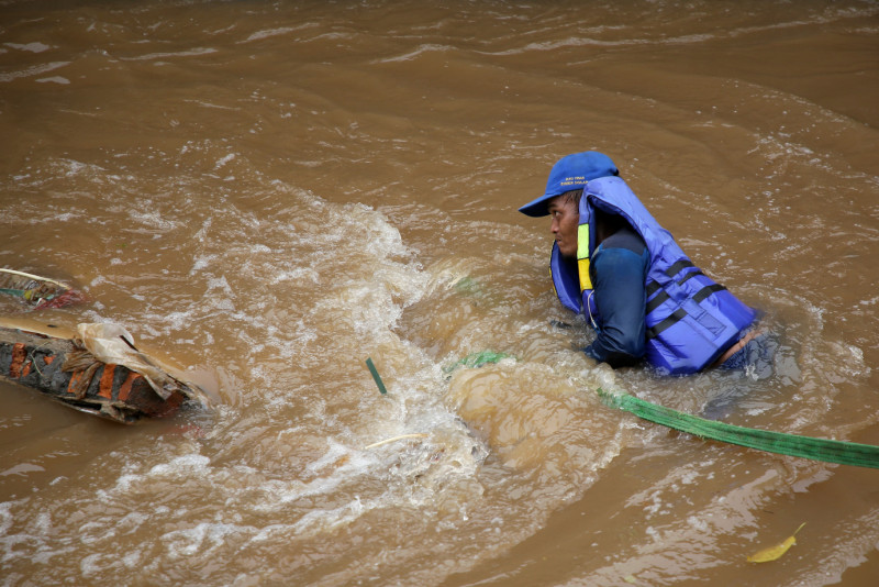 Petugas Gabungan Atasi Turap Longsor di Jalan Kali Baru